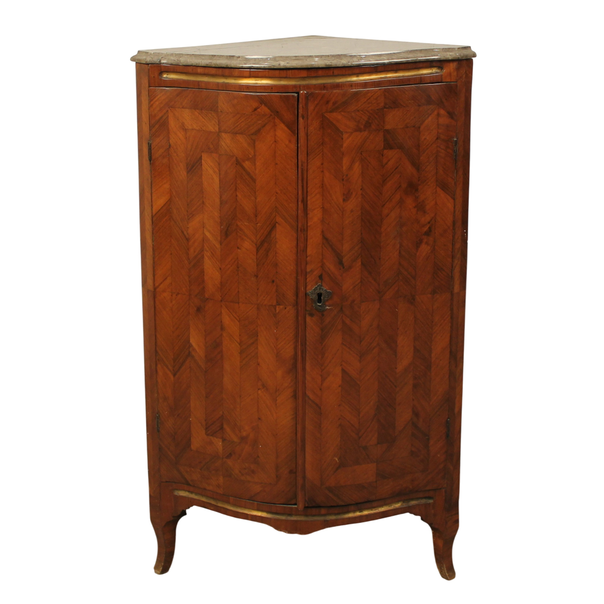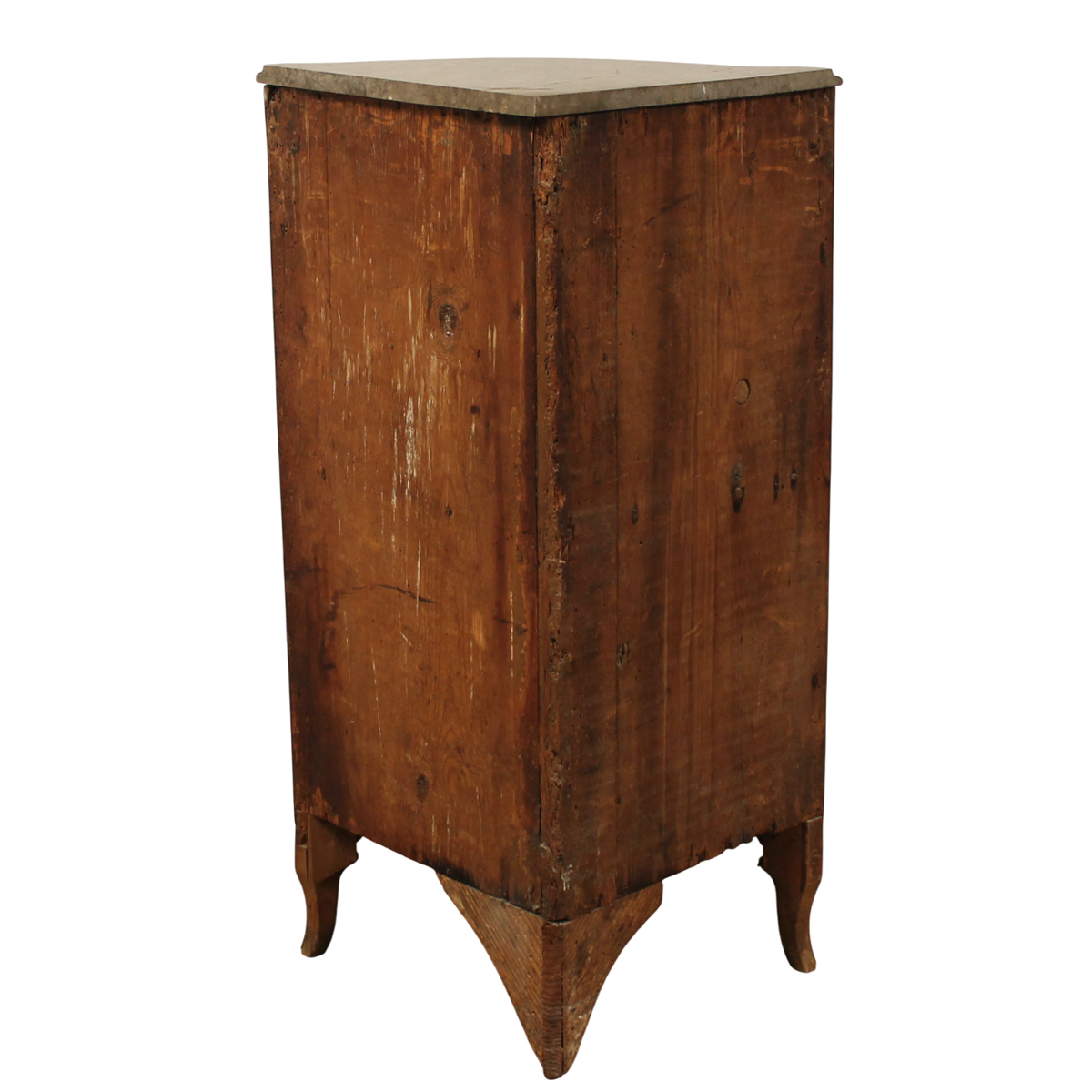 Angoliera adue ante Noce con piano in marmo sagomato (marmo di epoca posteriore con rotture). Sicilia. Fine secolo XVIII. Cm 58x41 h 96,5
