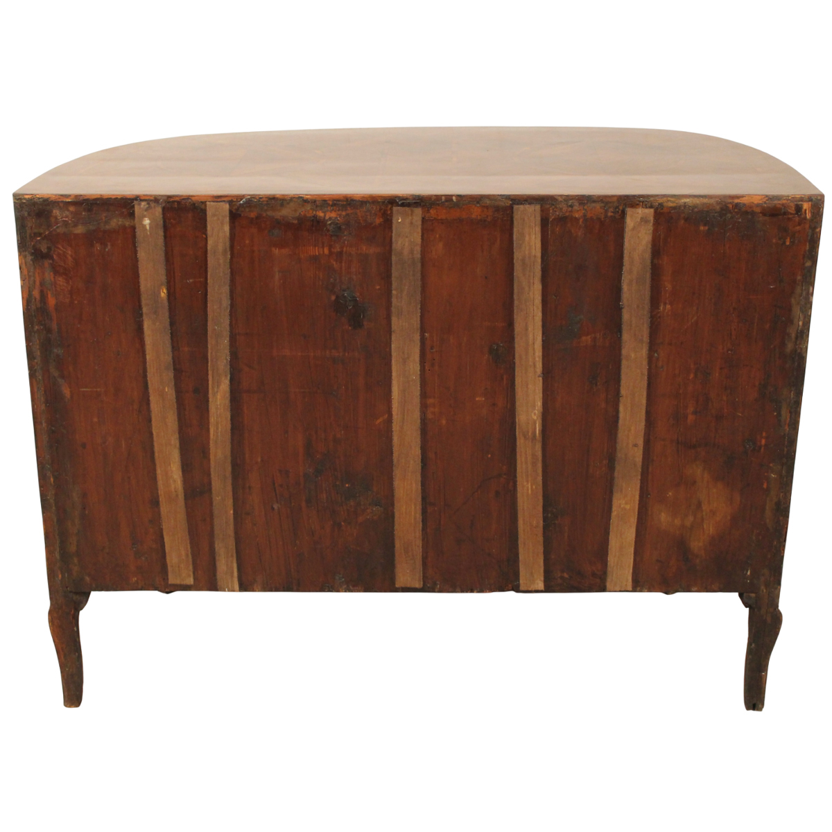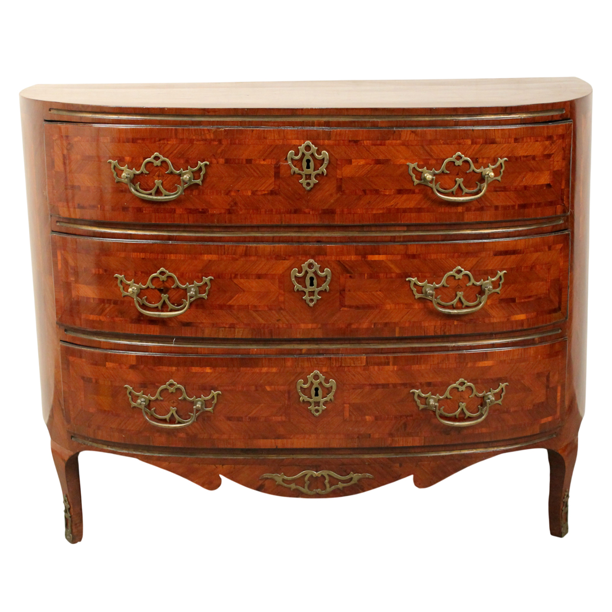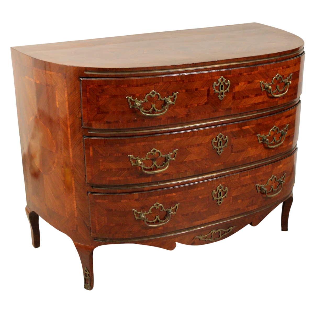 Cassettone a mezzo arancio a tre cassetti Noce con perfili in legno rosa. Maniglie in bronzo dorato. Sicilia. Fine secolo XVIII. Cm 127x62 h 95