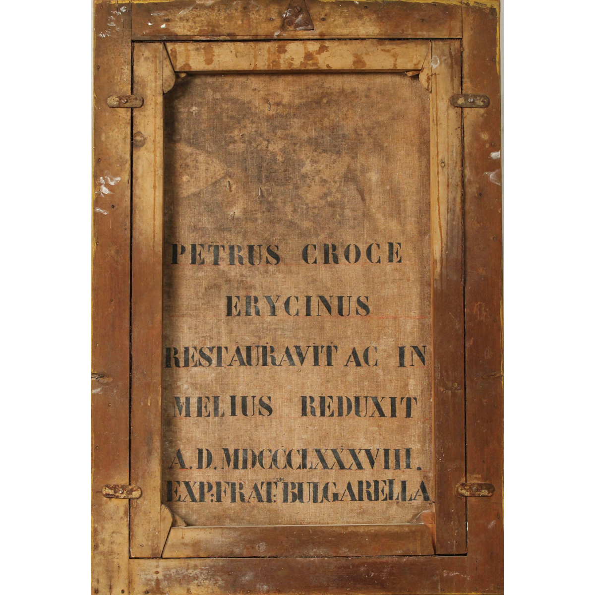 Scuola siciliana del secolo XVIII "Madonna di Custonaci" Dipinto ad olio su tela in cornice in legno dorato (lievi restauri). Iscrizione sul retro. Cm 76x49
