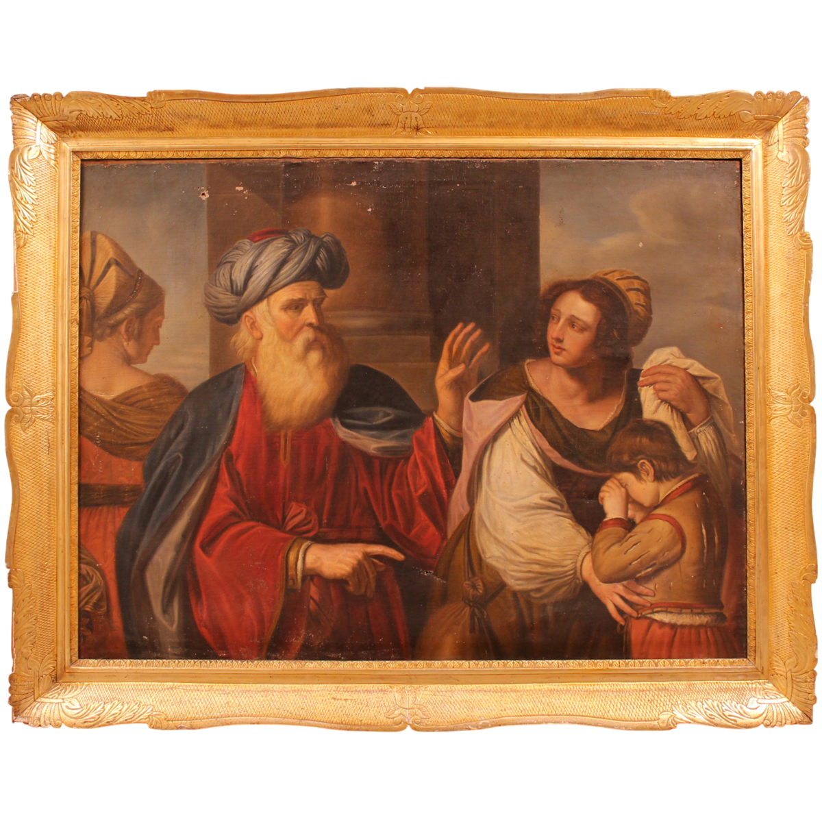 Copia dal Guercino "Agar e Ismaele" Grande dipinto ad olio su tela in cornice...
