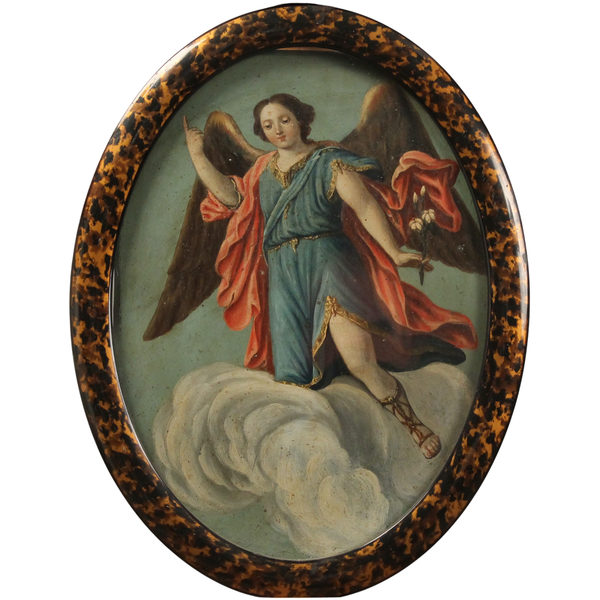 Scuola siciliana degli inizi del secolo XIX "San Gabriele Arcangelo" Dipinto ovale ad olio su zinco in cornice a finta tartaruga. Cm 35x25