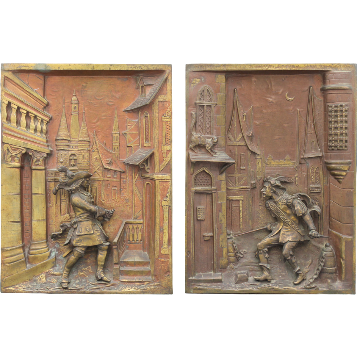 Coppia altorilievi Bronzo dorato raffiguranti scene di genere. Francia....