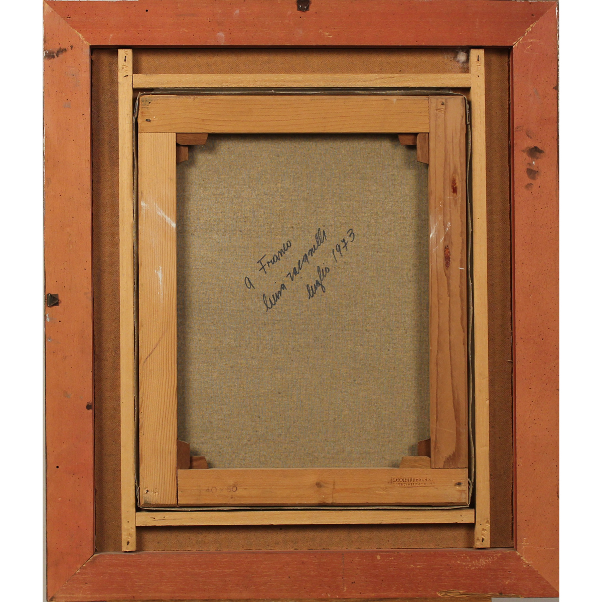 Mirando Iacomelli (1929/2007) "Astratto" Dipinto ad olio su tela in cornice. Datato 1972. Dedica sul retro. Cm 50x40