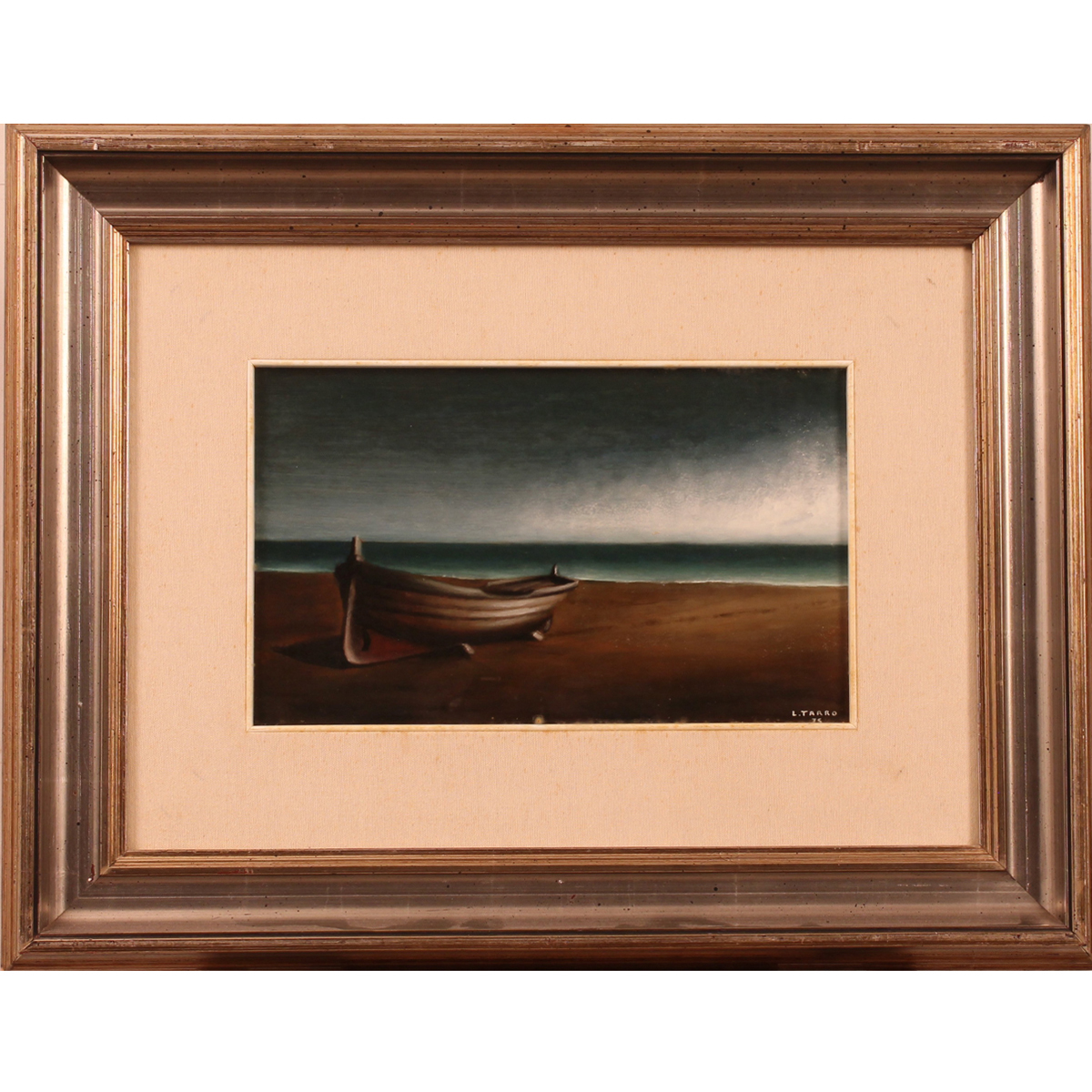 Lelio Tarro (XX) "Marina" Dipinto ad olio su tavola in cornice. Datato 1975. Cm 38x23