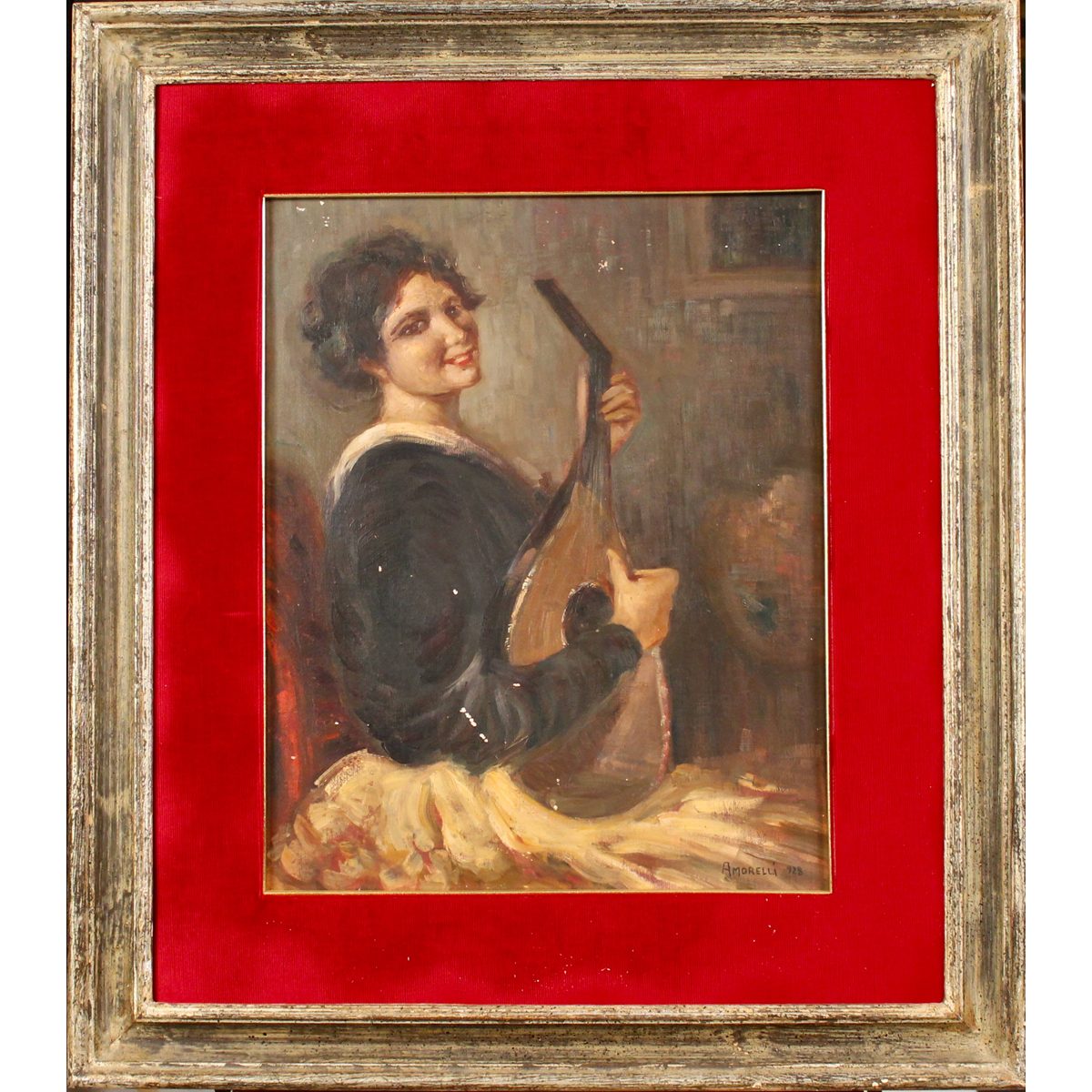 Lotto 339 | Alfonso Amorelli (1898/1969) "Figura di ragazza con mandolino" Dipinto ad...