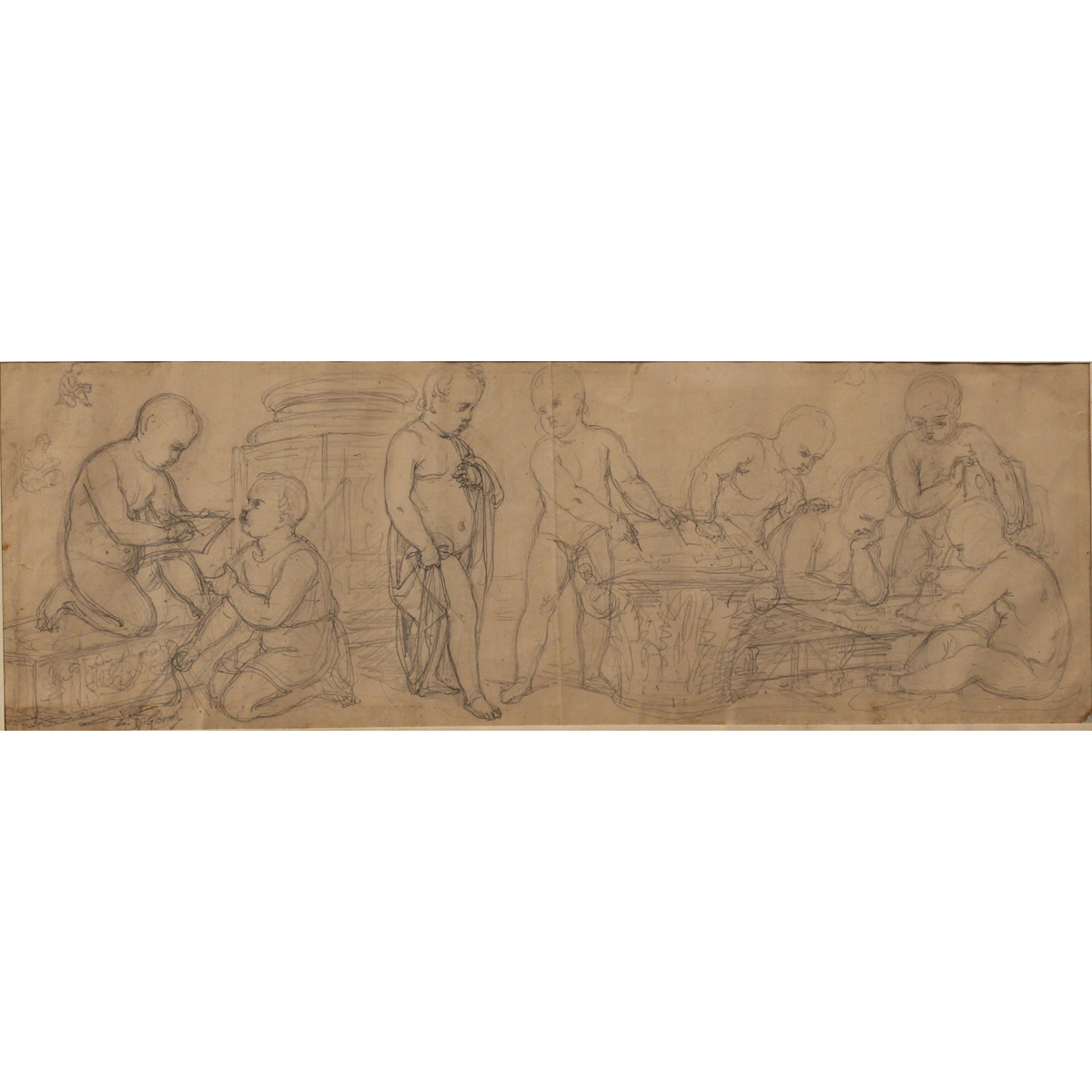 Studi di figure Disegno su carta in cornice. Firmato L. Di Giovanni. Cm 17,5x52