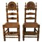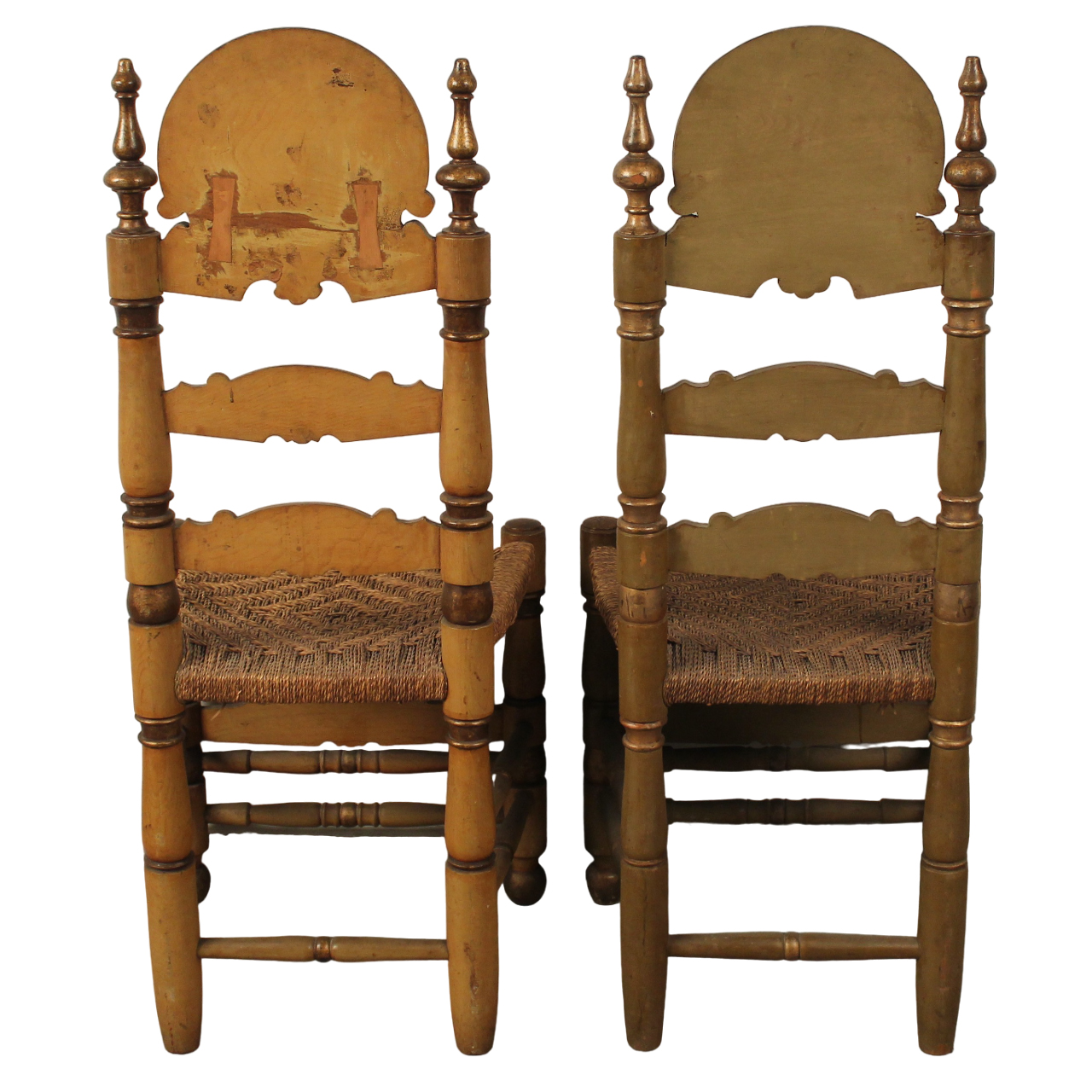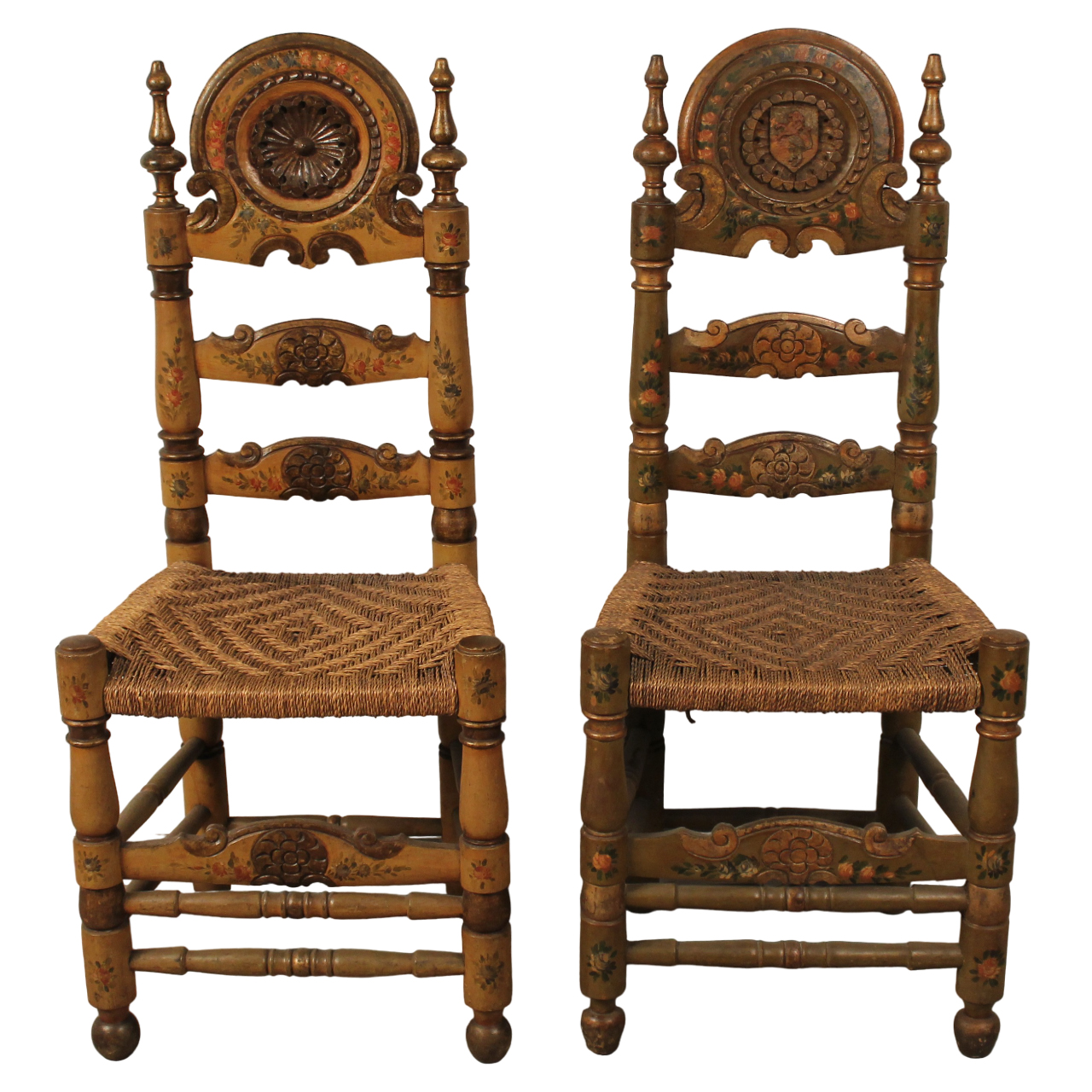 Due grandi sedie Legno scolpito e dipinto a motivi floreali. Cimasa intagliata. Fine secolo XIX. Cm 54x45 h 123