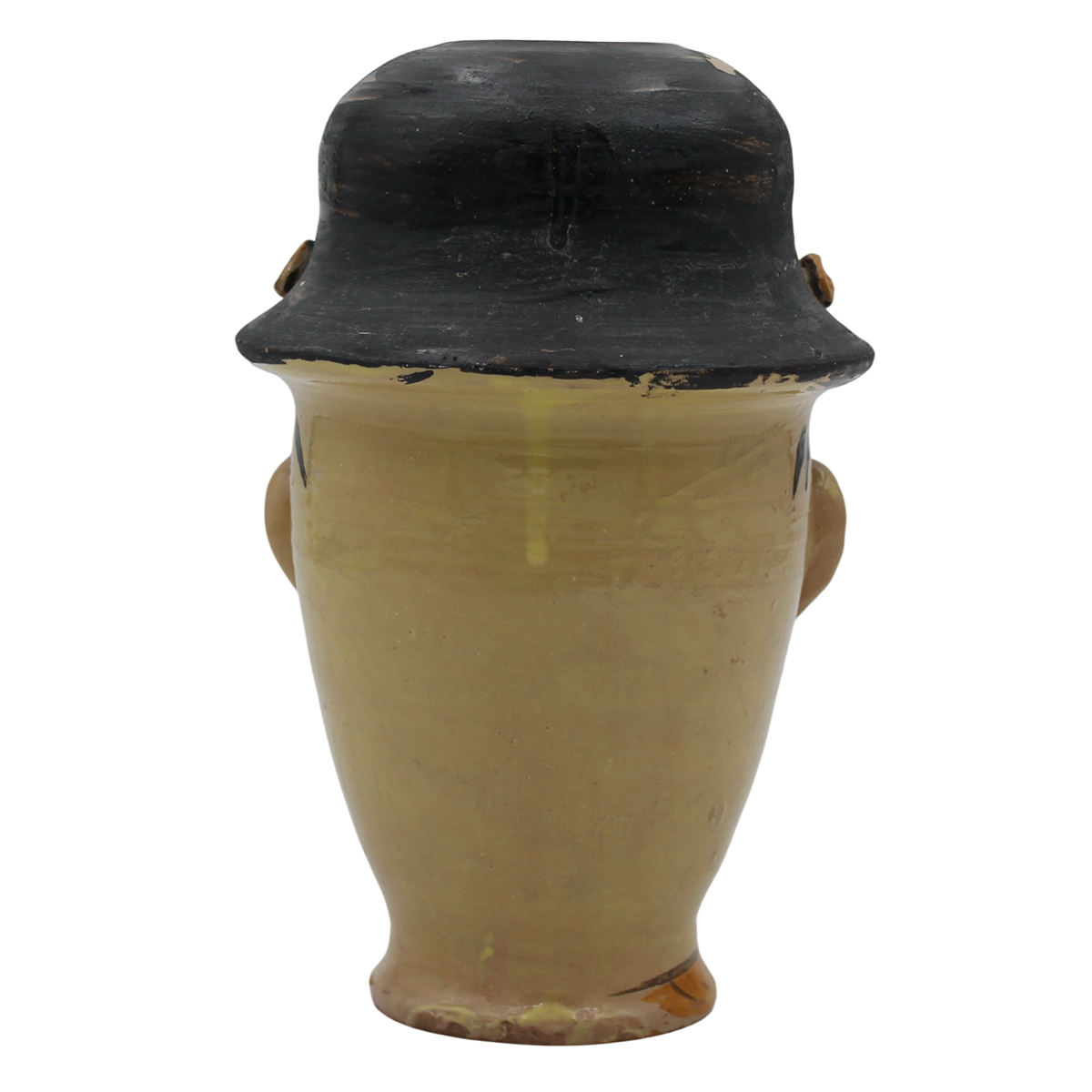 Uomo con bombetta Vaso in maiolica a decoro antropomorfo. Caltagirone. Secolo...