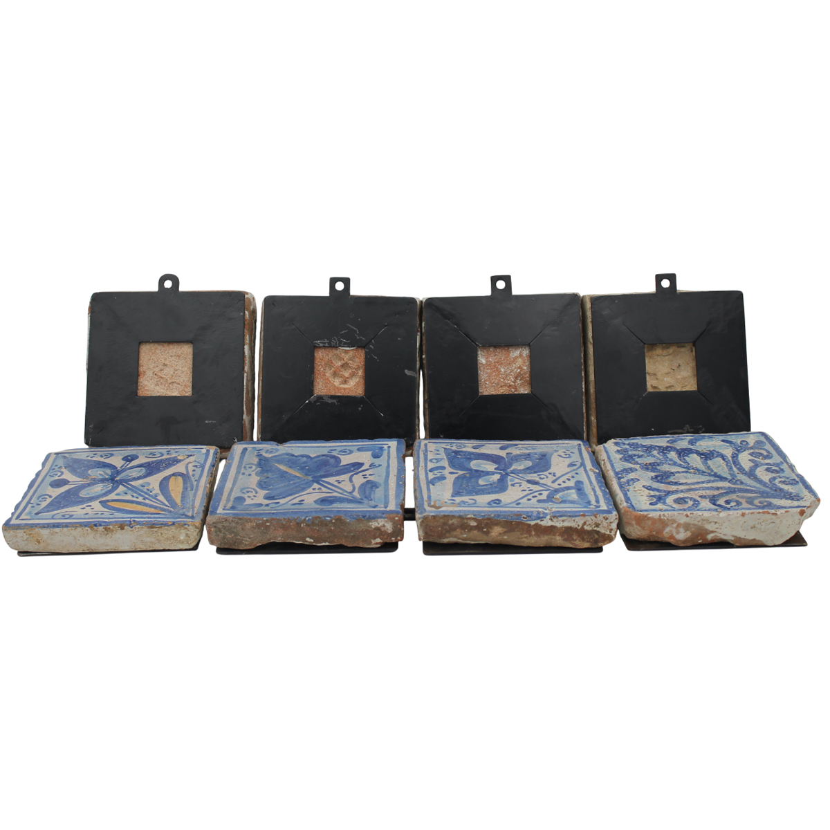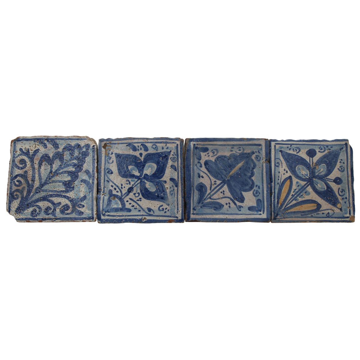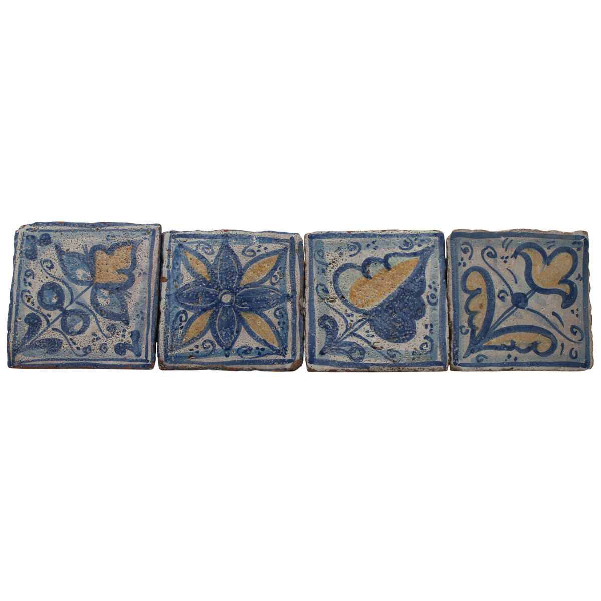 Otto mattonelle Antica maiolica con decoro a motivi vegetali policromi....