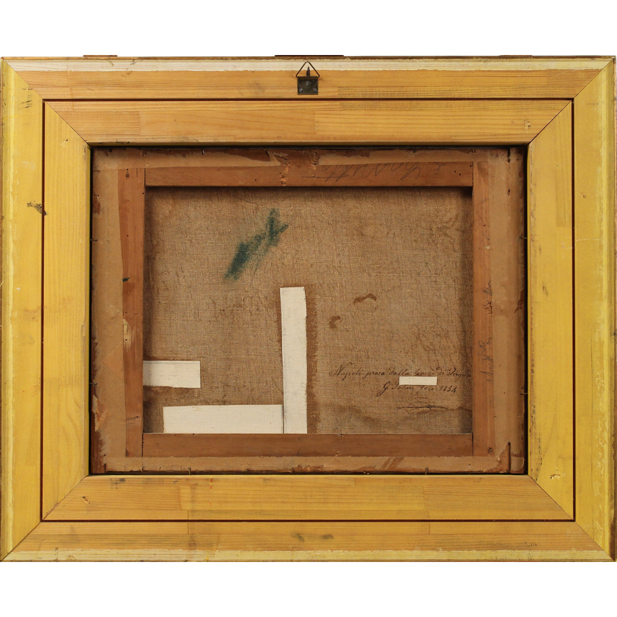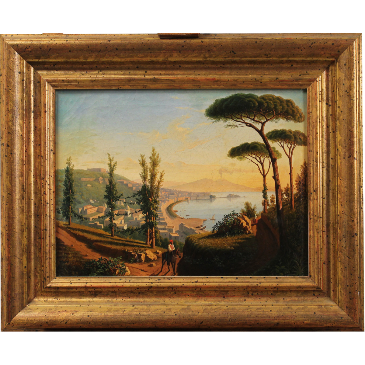 Giovanni Solari (1907/1998) "Napoli presa dalla tomba di Virgilio" Olio su tela in cornice (restauri e toppe sul retro). Datato 1854. Cm 33x43