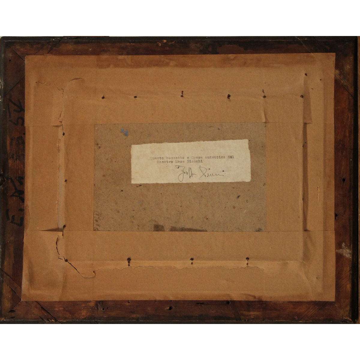 Mosè Bianchi (attr.) (1840/1904) "Scorcio di città con figure" Dipinto ad olio su cartone in cornice. Autentica sul retro. Cm 28x20