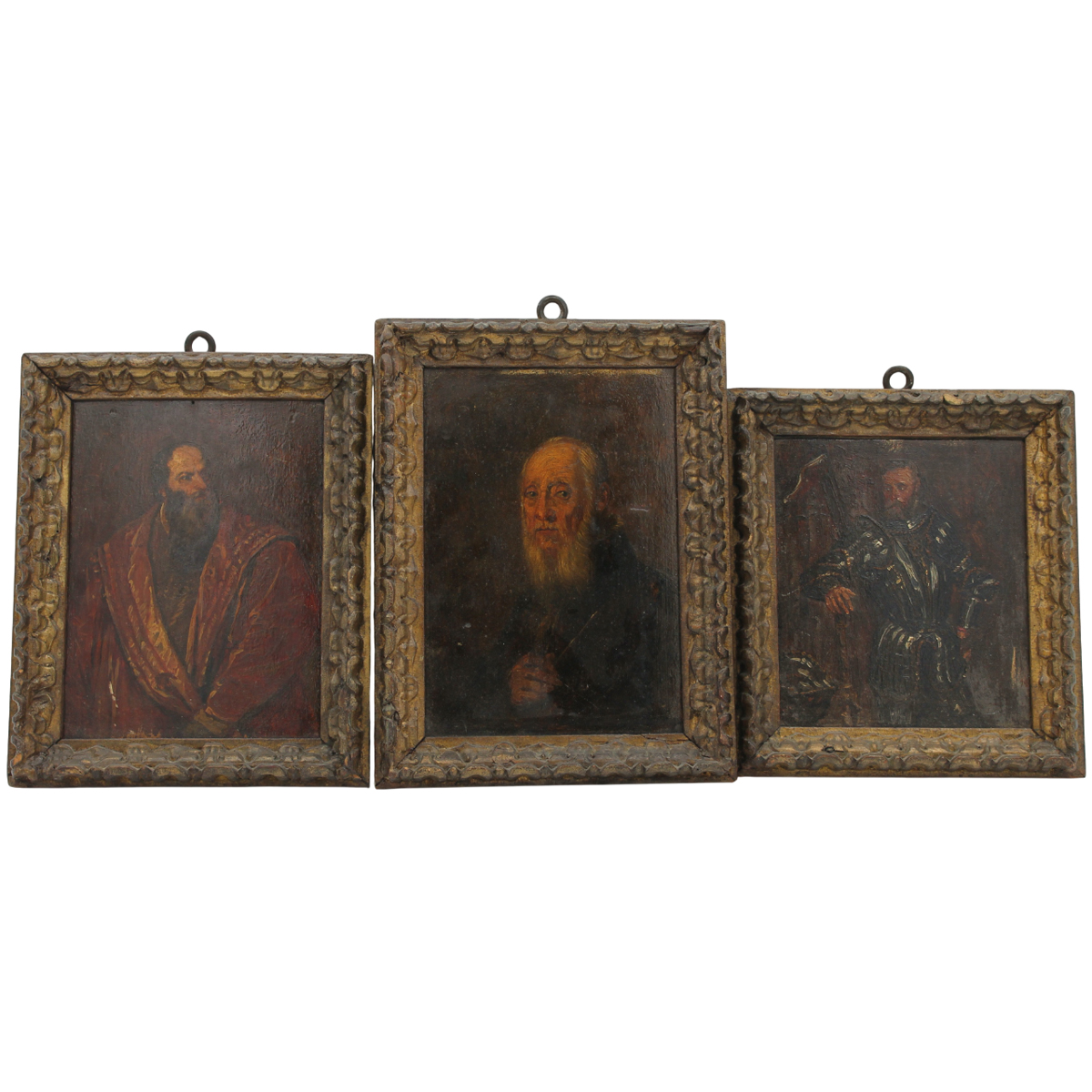 Da Eugene Benson (1839/1908) "Tre ritratti" Dipinti ad olio su tavolo raffiguranti: Pietro Aretino, Tinteretto e Paolo Veronese. Cm 15x10 circa