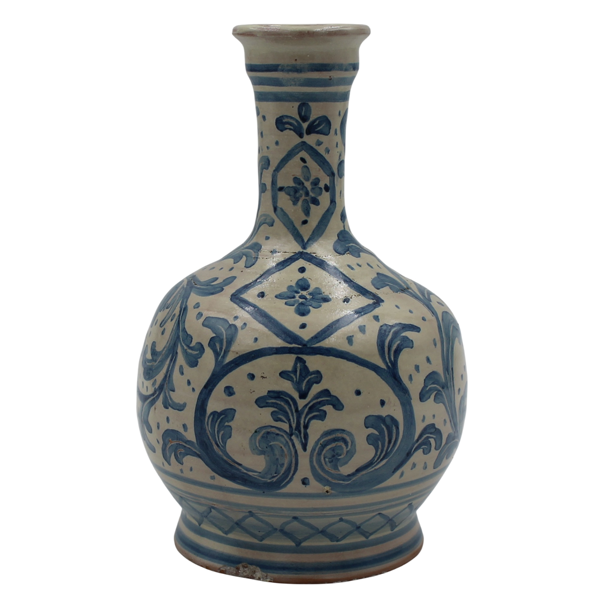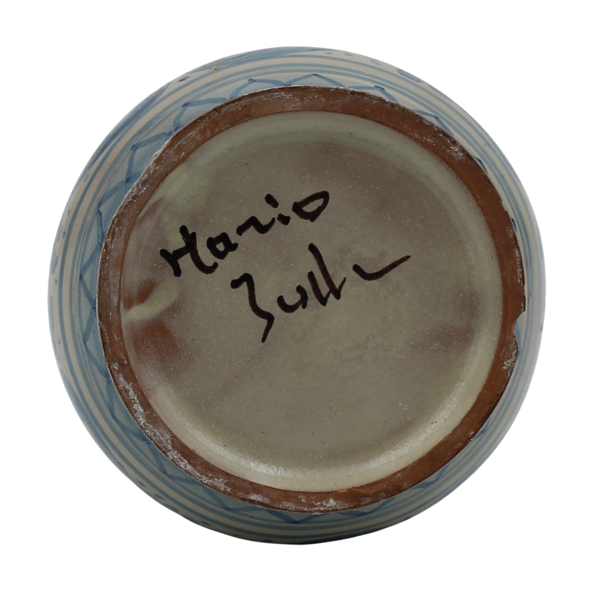 Bottiglia Maiolica policroma. Firmata Mario Iudici. Secolo XX. Cm h 22