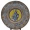 Piatto Antica maiolica con decoro centrale raffigurante guerriero e decoro a motivi geometrici policromi (restauri). Deruta. Secolo XVII. Cm d 31,5