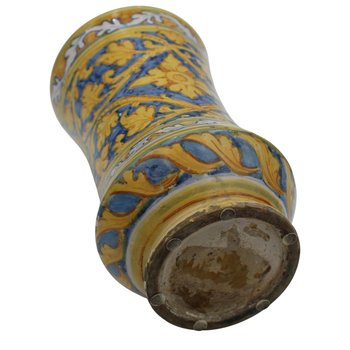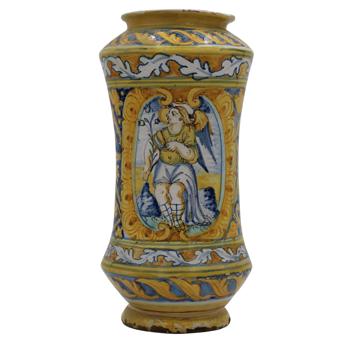 Albarello Antica maiolica policroma decorata sul davanti con San Gabriele e...