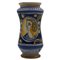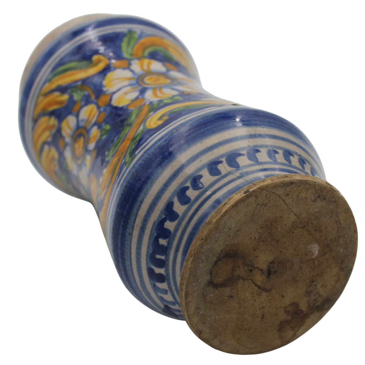 Albarello Antica maiolica decorata con profilo di ragazzo e motivi floreali e vegetali policromi. Gerace. Secolo XVIII. Cm h 27