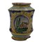 Rocchetto Antica maiolica decorata con paesaggio con casolare e motivi vegetali e floreali policromi (lievi danni al piede). Caltagirone. Secolo XVIII. Cm h 18