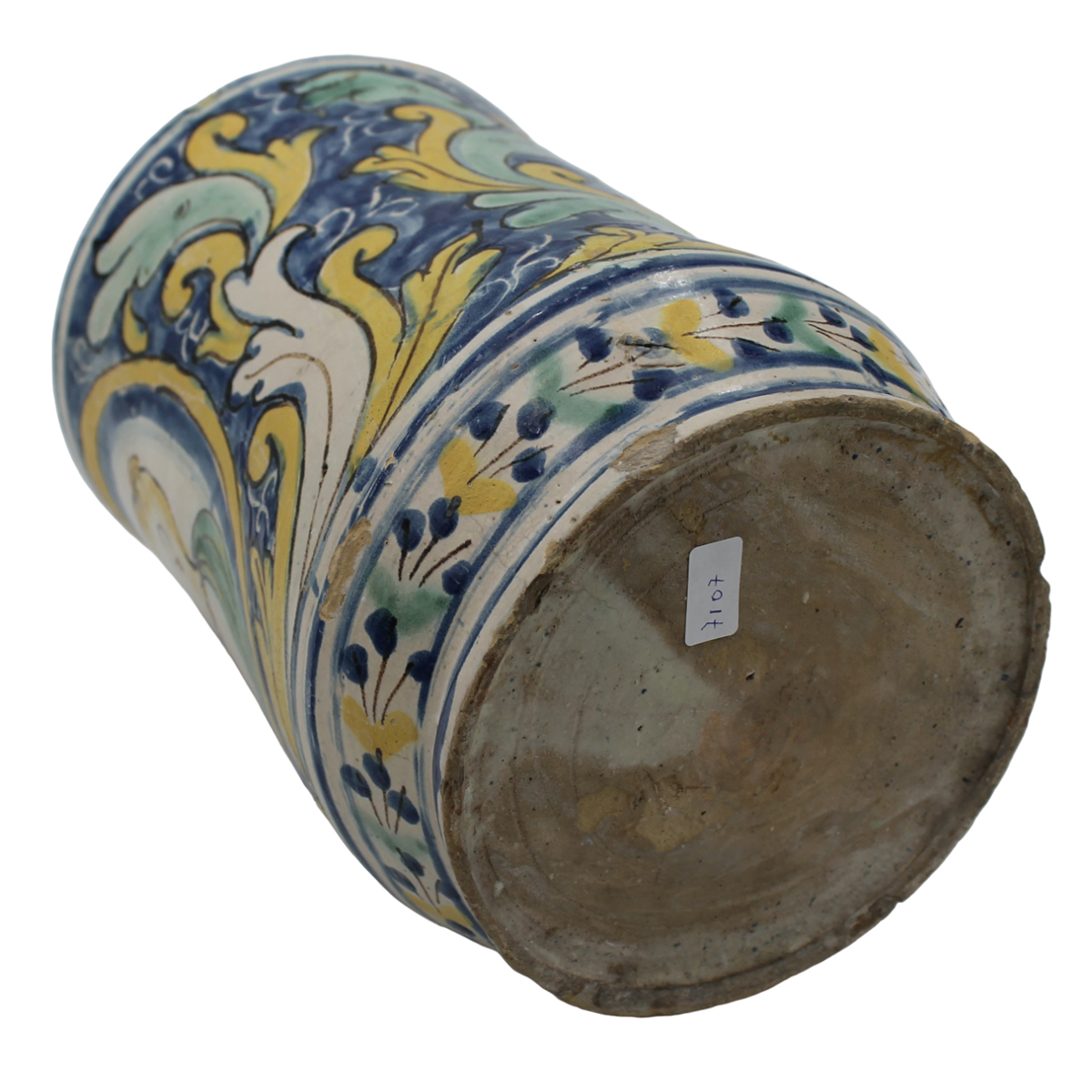 Grande cilindro Antica mailica decorata sul davanti con medaglione centrale...