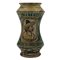 Albarello Antica maiolca con profilo di uomo con cappello sul davanti e decoro a motivi vegetali e ornamentali policromi (lievi sbeccature alla base). Burgio. Secolo XVIII. Cm h 24,5