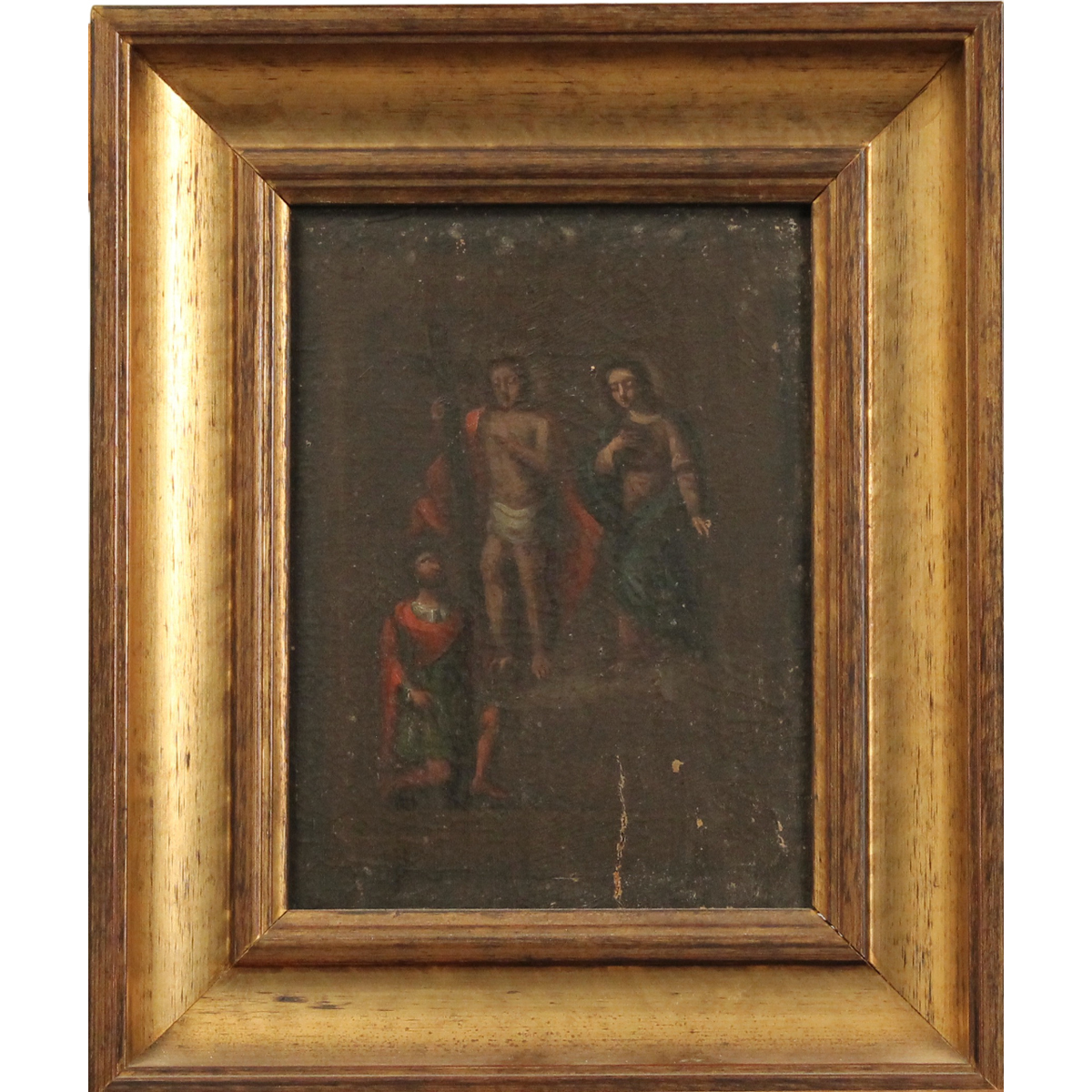 Scuola siciliana della fine del secolo XVIII "La Resurrezione" Dipinto ad olio su tela riportata su tavola in cornice dorata. Cm 20x16