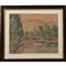 Emanuele Rambaldi (1903/1968) "Paesaggio con figure" Acquerello su carta in cornice di mogano. Cm 51x40
