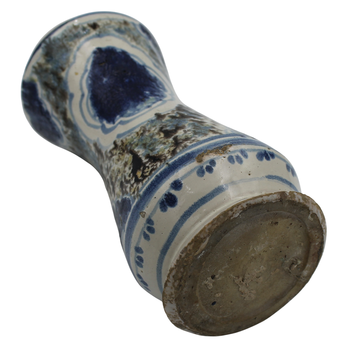 Albarello Antica maiolica decorata su fondo bianco con motivi ornamentali in blu. Caltagirone. Fine secolo XVIII. Cm h 27