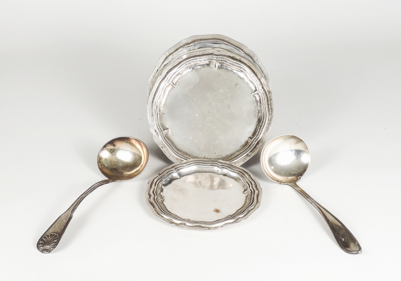 Lotto 315 | LOTTO DI ARGENTERIA composto da sei piattini con bordo mosso, uno dei quali...
