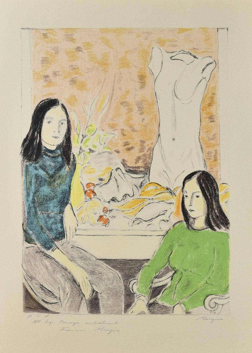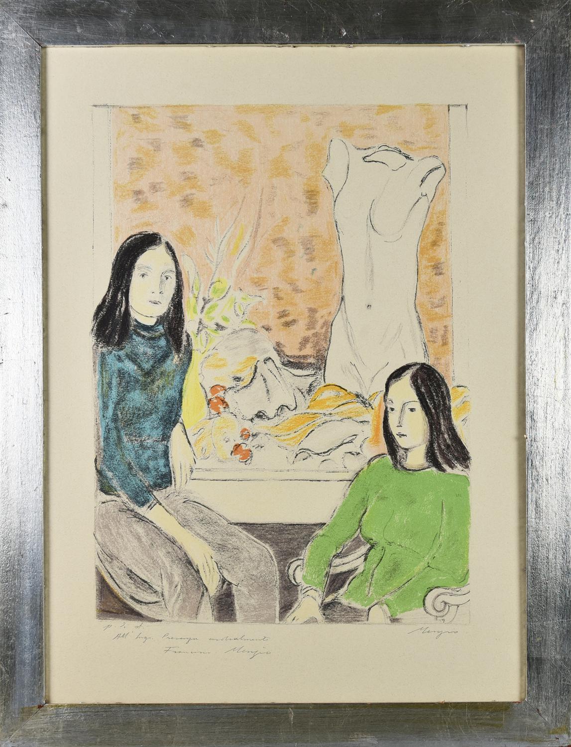 Francesco Menzio DUE MODELLE NELLO STUDIO litografia, cm 65x47; es. P. di...