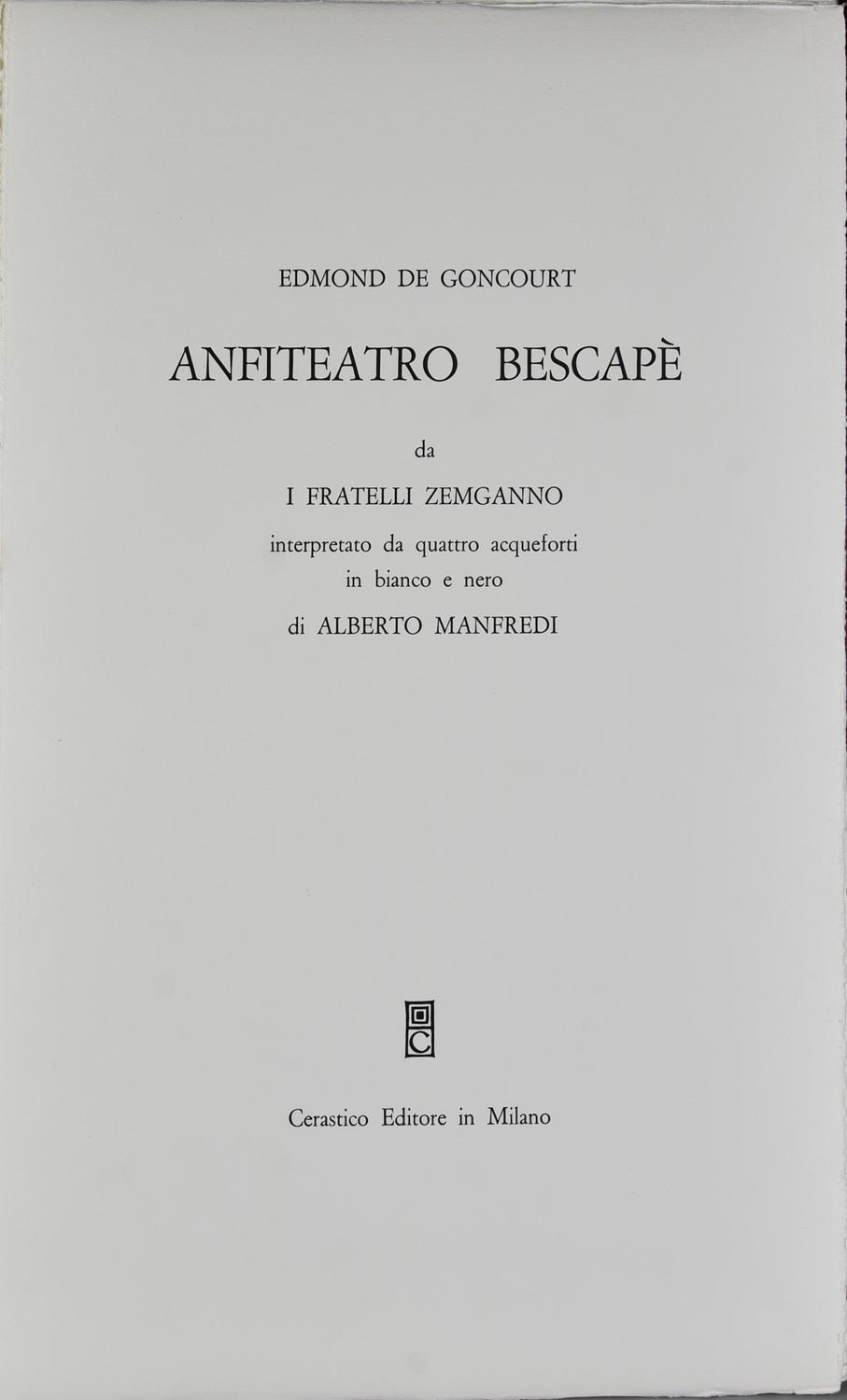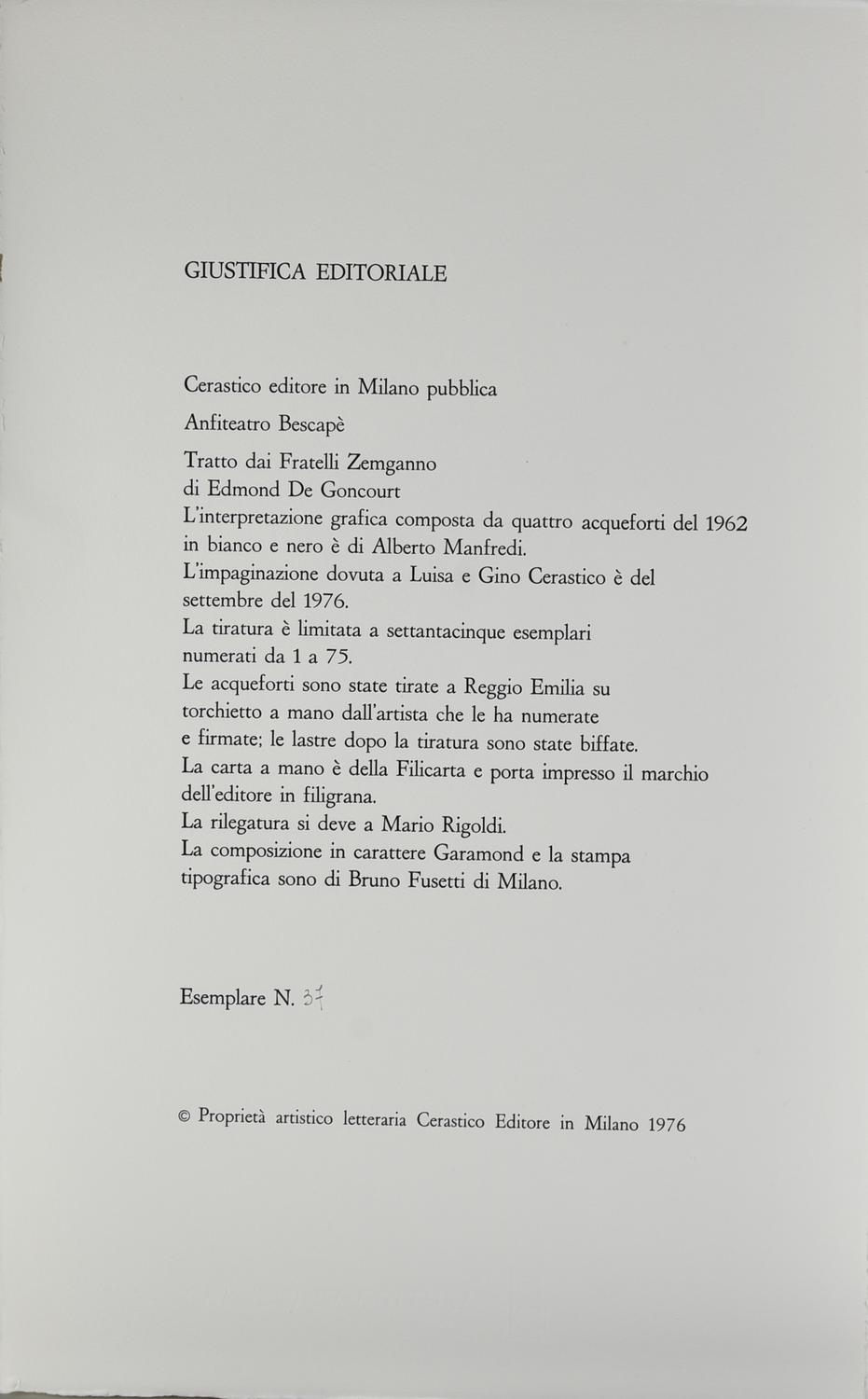 Alberto Manfredi ANFITEATRO BESCAPE', 1976 cartella contenente un testo di...