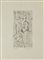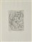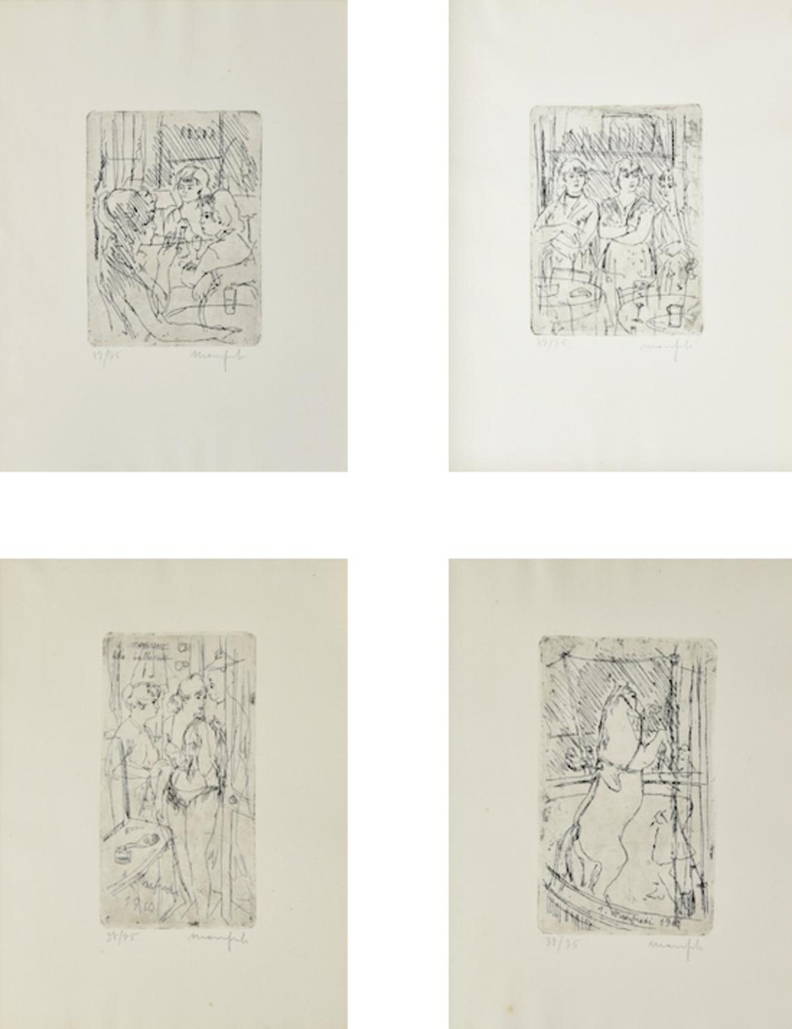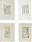 cartella contenente un testo di Edmond de Goncourt e 4 acqueforti, varie misure, su foglio cm 30x23; es. 37/75