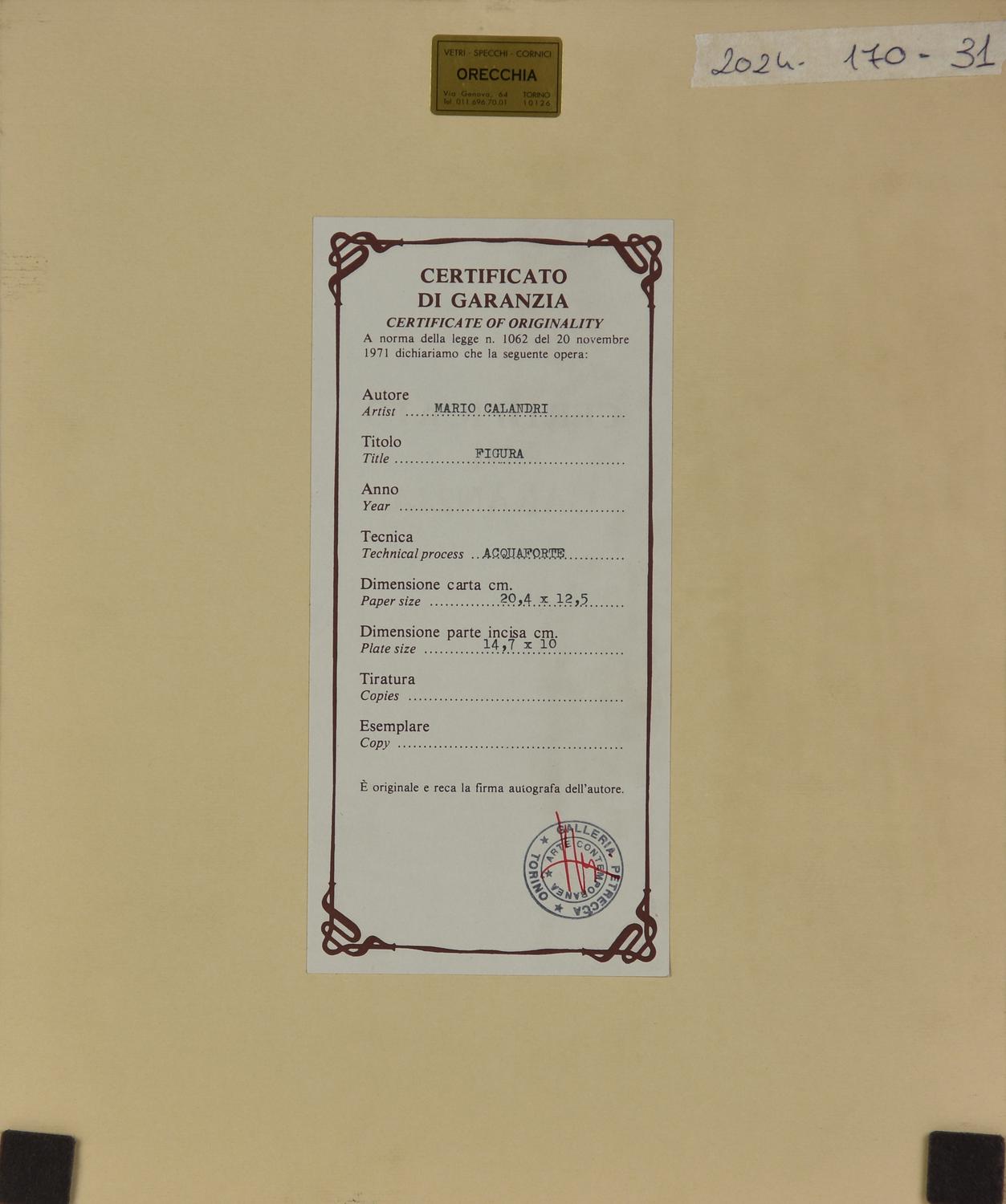 Mario Calandri FIGURA acquaforte, cm 14,7x10, su foglio cm 20,4x12,5; es....