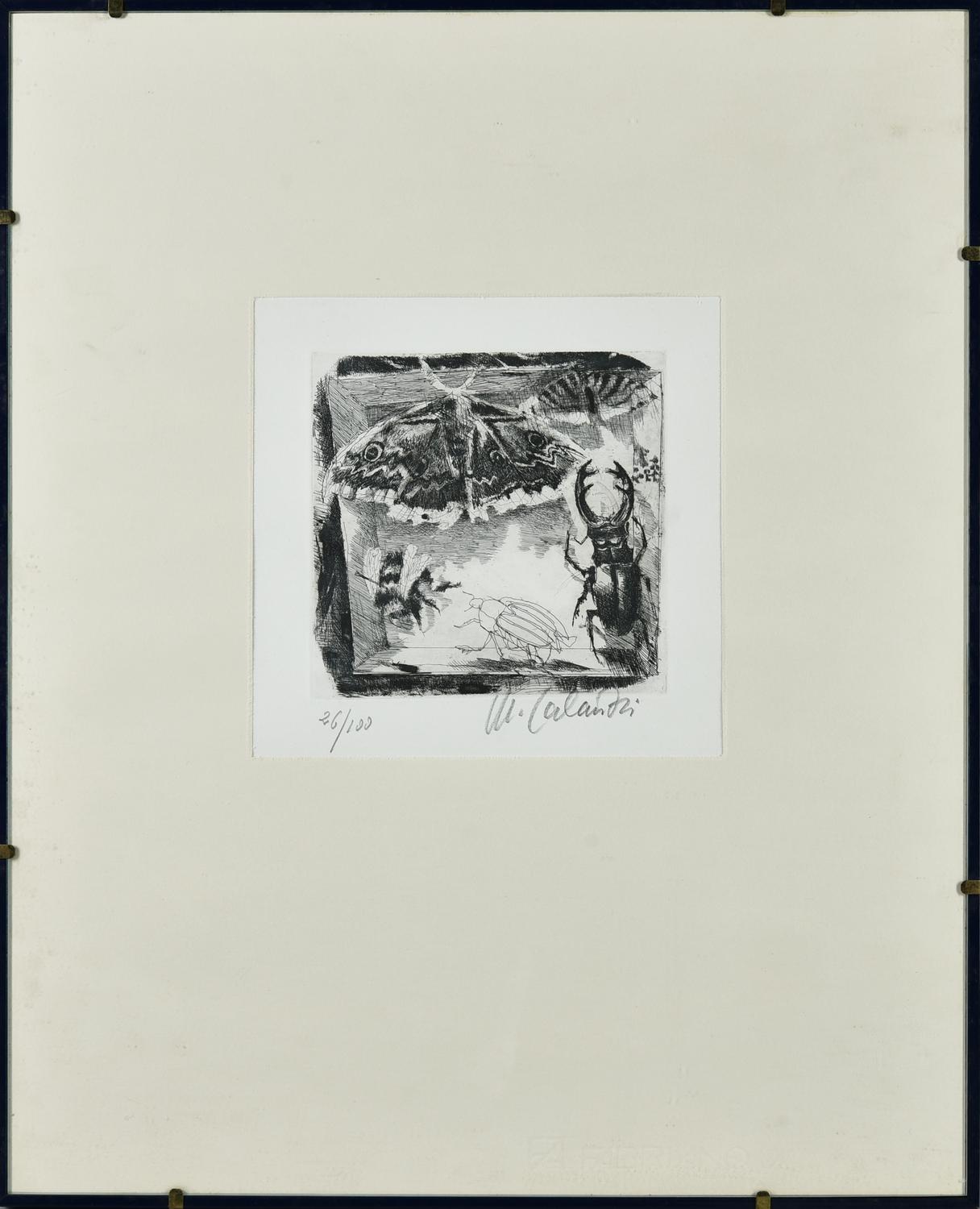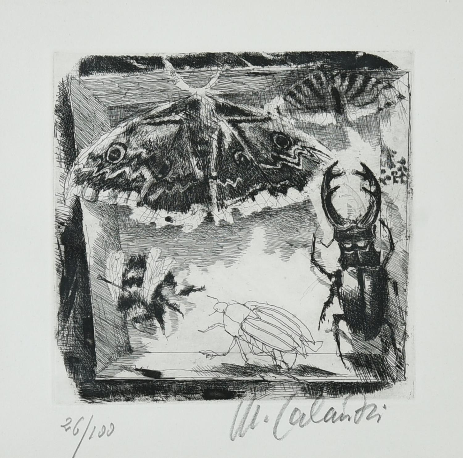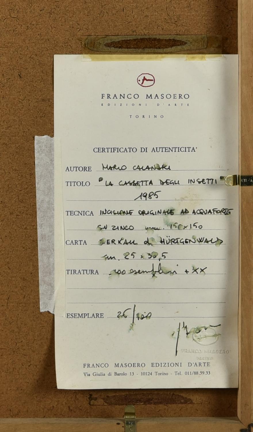 Mario Calandri LA CASSETTA DEGLI INSETTI, 1985 acquaforte, cm 14x14, su...
