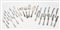 SERVITO DI POSATE DA DOLCE IN ARGENTO Germania, inizio del XX secolo composto da 12 forchettine e 12 coltellini con manici sbalzati con motivi di gusto liberty, corredato da cinque posate da portata coeve in metallo dorato con manici rivestiti in argento gr complessivi netti esclusi i coltelli 485 (28)
