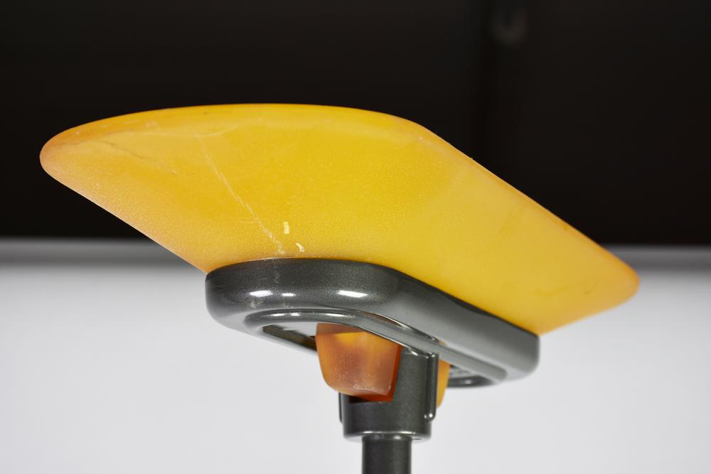 piantana con base e cappello in vetro satin e struttura in metallo verniciato
