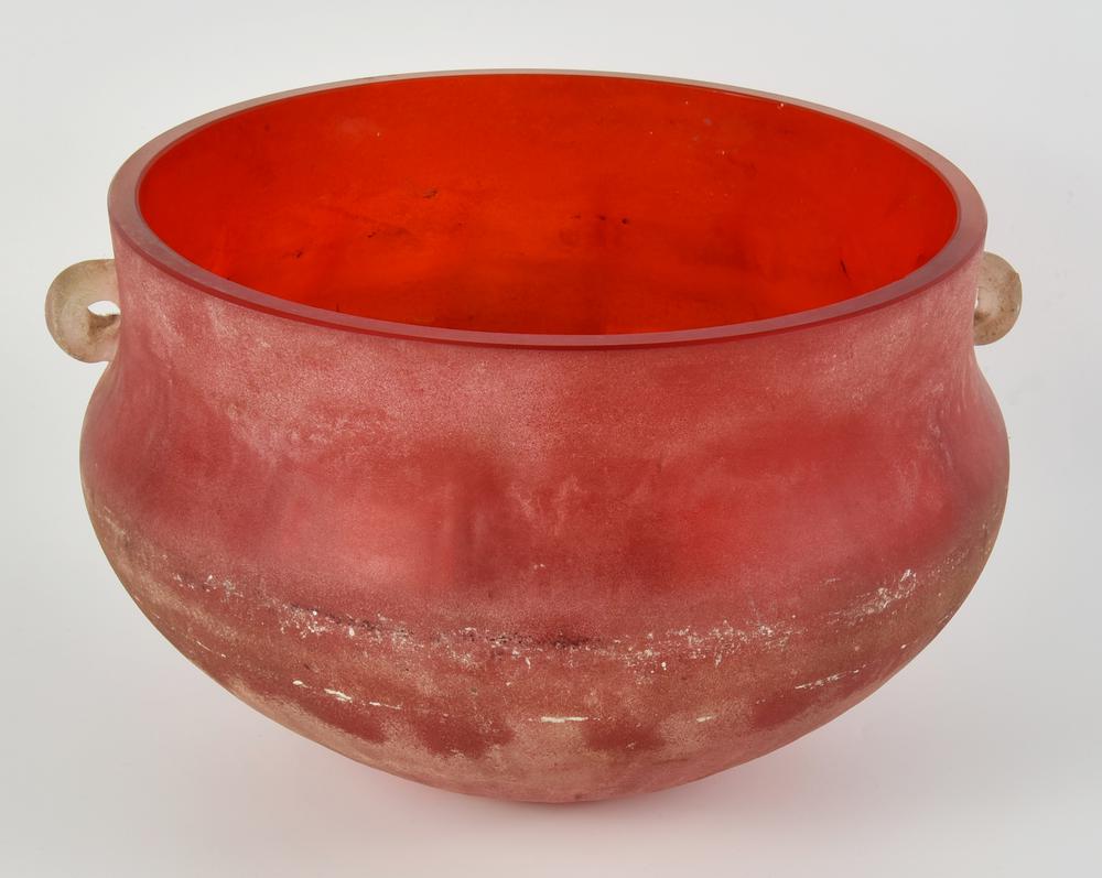 VASO, anni '80 vetro sabbiato, h cm 18, diam cm 24,5 sul fondo: incisione...