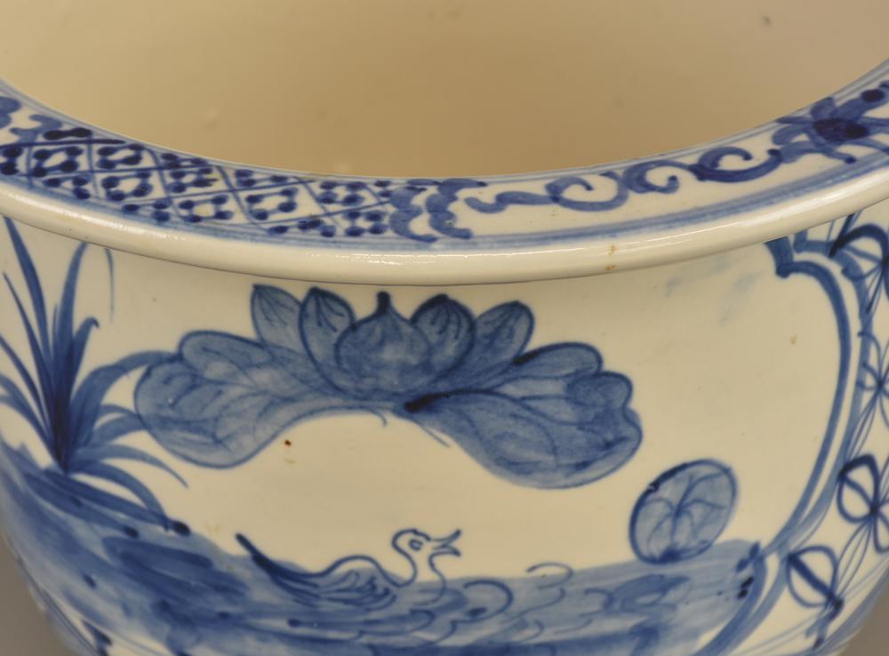 COPRIVASO in ceramica decorata nei toni del blu h cm 19 diam cm 27