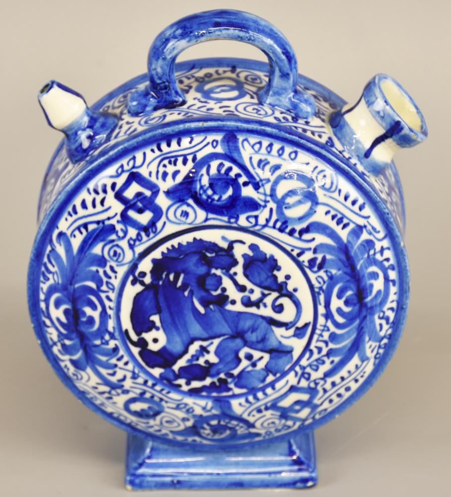 BORRACCIA IN CERAMICA di manifattura spagnola valenciana, decorata nei toni...