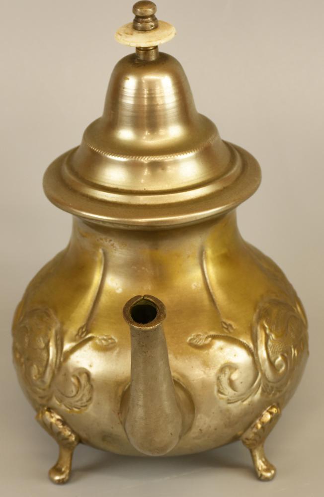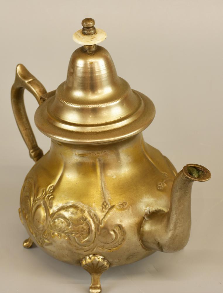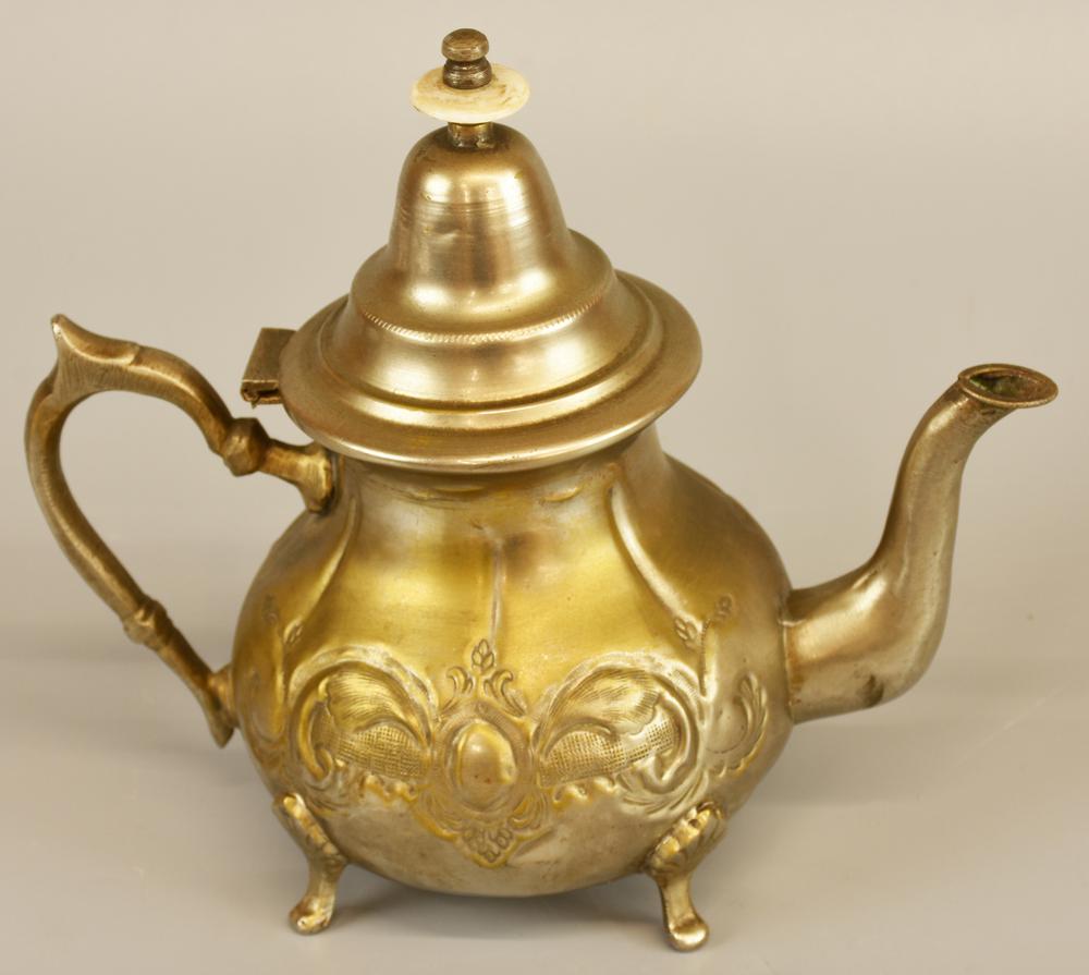 COPPIA DI TEIERE in rame nichelato, decorati con motivi della cultura araba h...