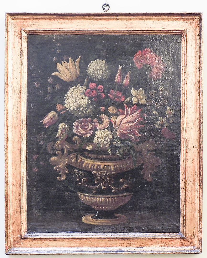 VASO CON FIORI Scuola fiamminga del XIX secolo olio su tela, in cornice dorata coeva cm 74x56,5