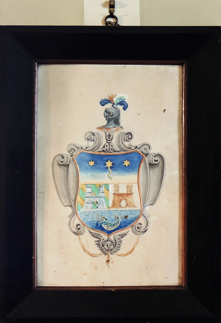 Lotto 371 | STEMMA NOBILIARE acquerello d'epoca su carta, in cornice cm 33x22