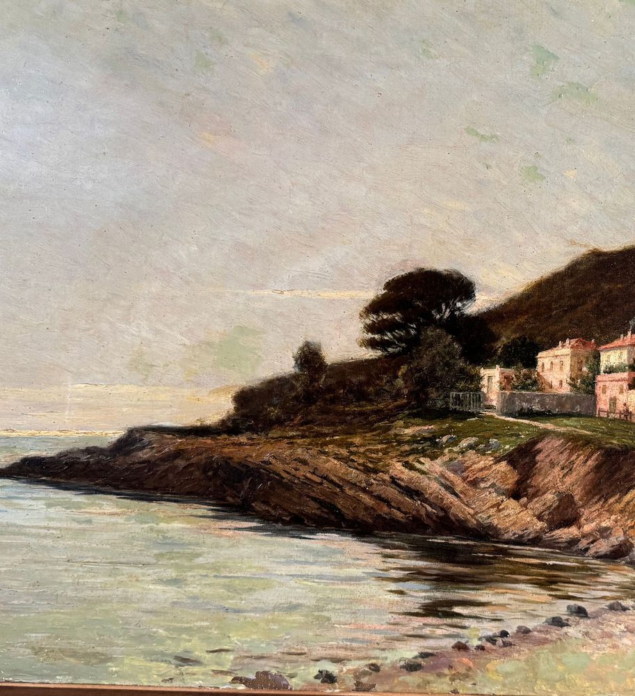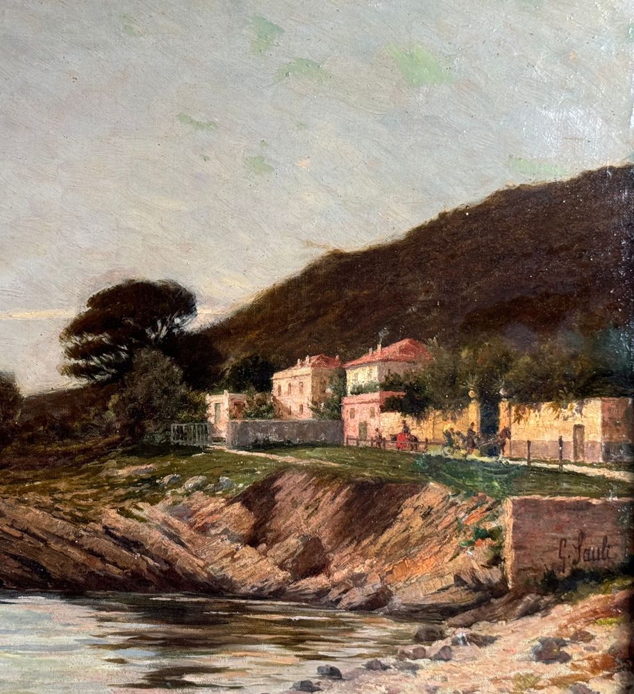 Dipinto olio su tela, periodo XIX secolo scuola Italiana, raffigurante Tratto di costiera. Dimensioni compreso cornice: 84x68 cm. Dimensioni interno cornice: 65x48 cm. Reca firma laterale a destra da Giuseppe Sauli (1853 - 1928). Opera in buone condizioni con lievi segni di vissuto come da foto allegate. Eccellente qualità artistica.