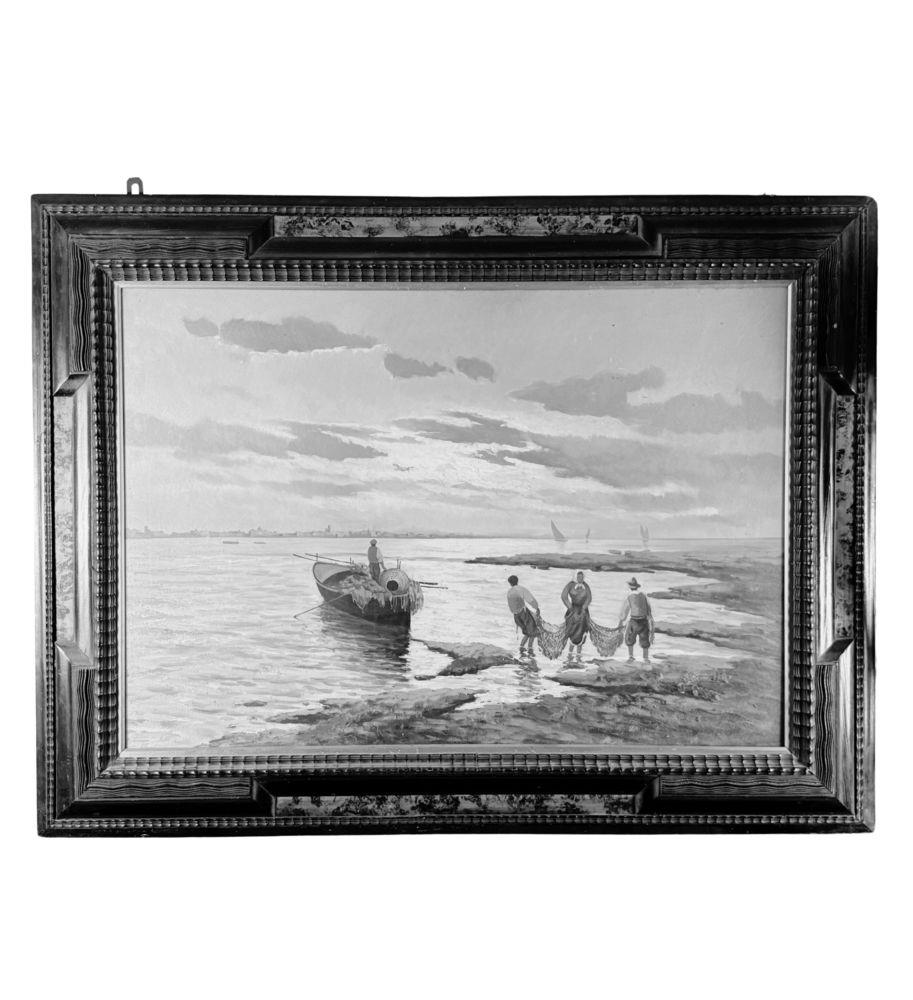 Dipinto olio su tela, periodo XX secolo scuola Italiana, raffigurante Pescatori. Dimensioni compreso cornice: 125x96 cm. Dimensioni interno cornice: 100x70 cm. Da artista anonimo. Opera in ottime condizioni di eccellente qualità artistica e corredato da una buona cornice.