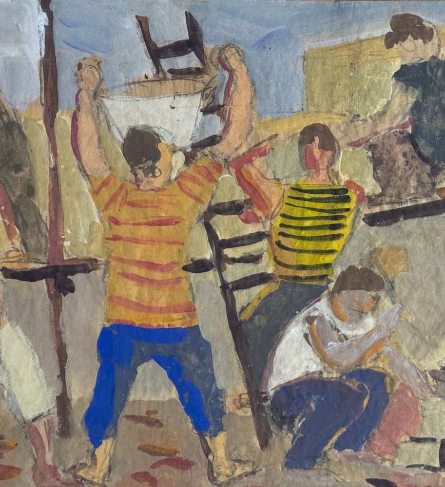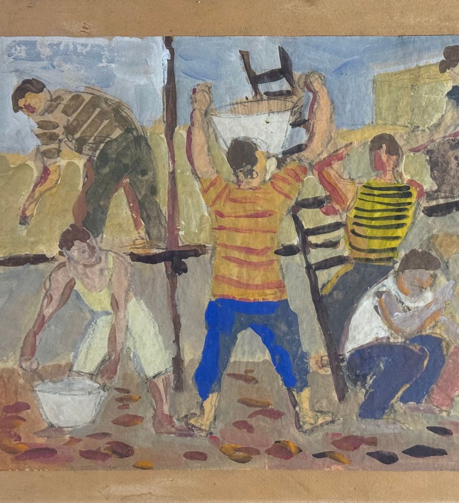 Acrilico su carta, periodo XX secolo scuola Italiana, raffigurante Operai. Dimensioni compreso cornice: 66x56 cm. Dimensioni interno cornice: 50x37 cm. Reca firma in basso a destra da artista non identificato. Opera in buone condizioni.