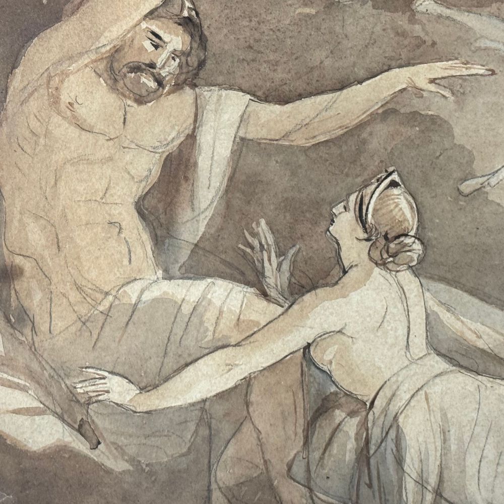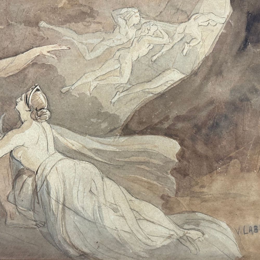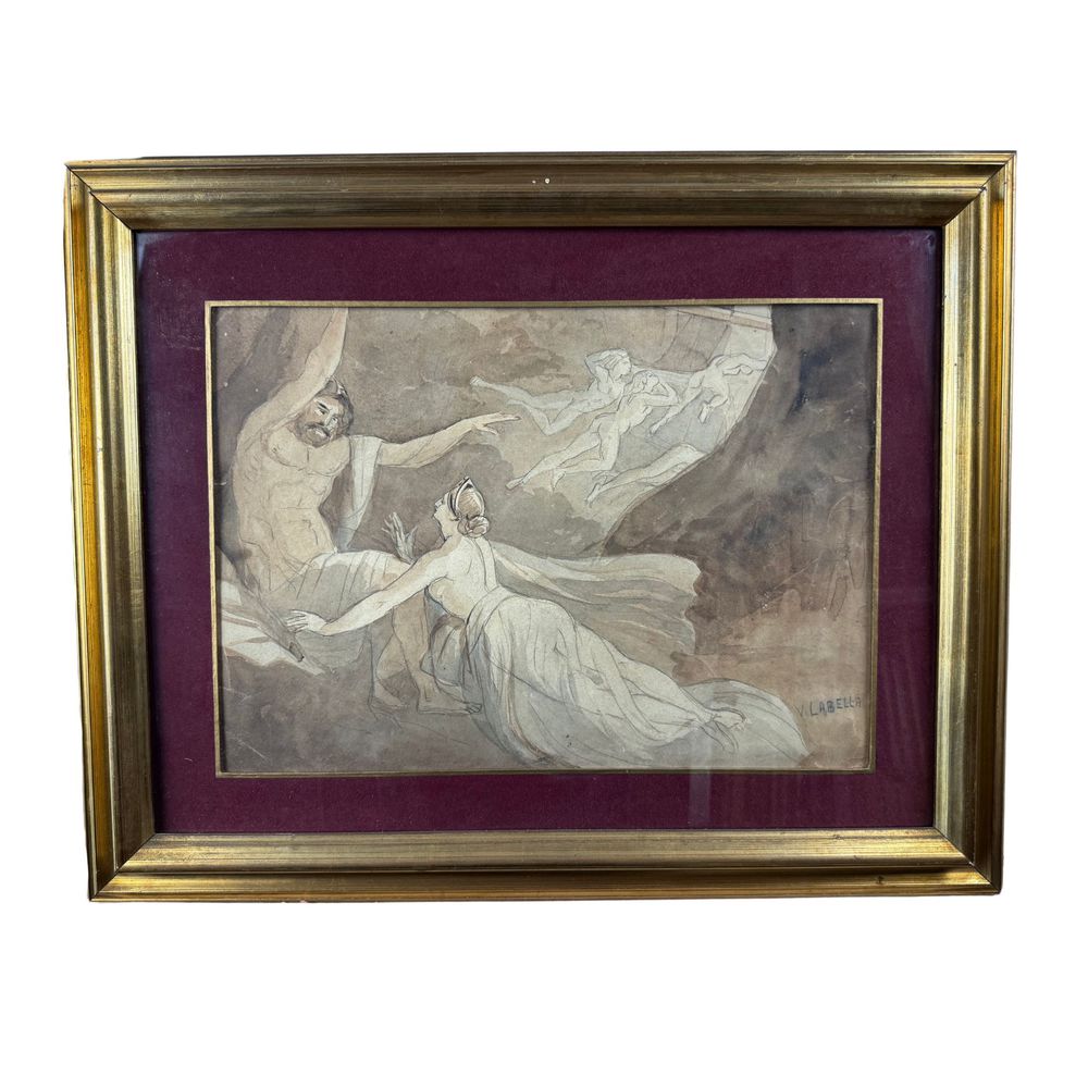 Disegno e acquerello (tecnica mista), periodo XX secolo scuola Italiana, raffigurante Scena romantica. Dimensioni interno cornice: 45x33 cm. Dimensioni compreso cornice: 63x50 cm. Reca firma in basso a destra da Vincenzo Labella. Opera in buone condizioni.