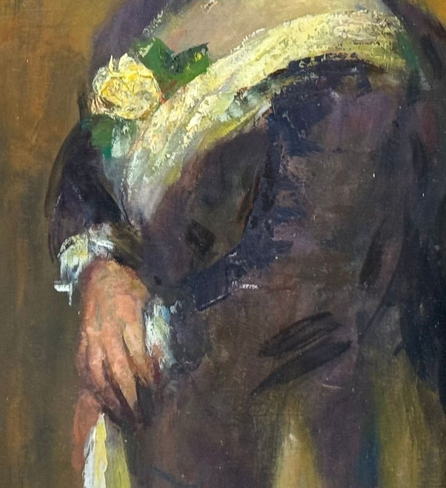 Dipinto olio su tela, periodo XX secolo scuola Italiana, raffigurante Ritratto di donna. Dimensioni compreso cornice: 32x67 cm. Dimensioni interno cornice: 26x61 cm. Reca firma in basso a destra da artista non identificato. Opera in buone condizioni.