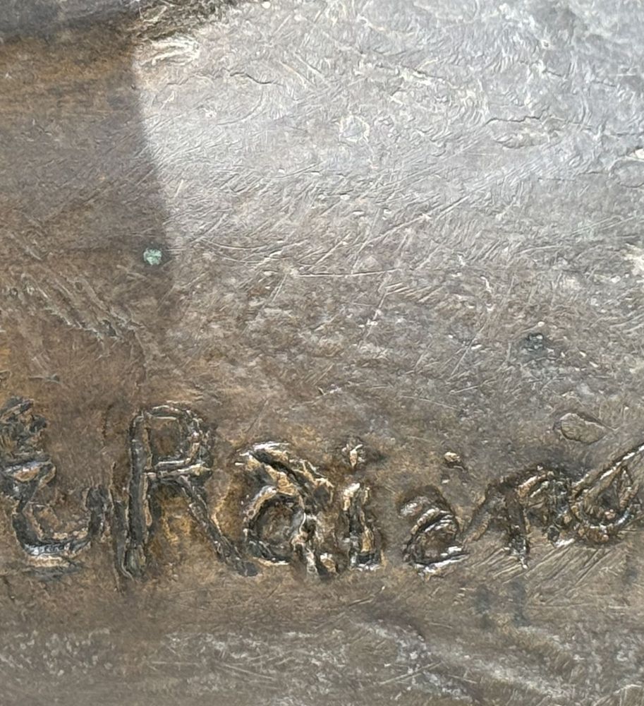Scultura in bronzo patinato a cera persa, su base in marmo, periodo inizio del XX secolo, Raffigurante Busto di nobile uomo. Reca firma E. Raiano. Dimensioni: 62x52x28 cm. Opera in buone condizioni.