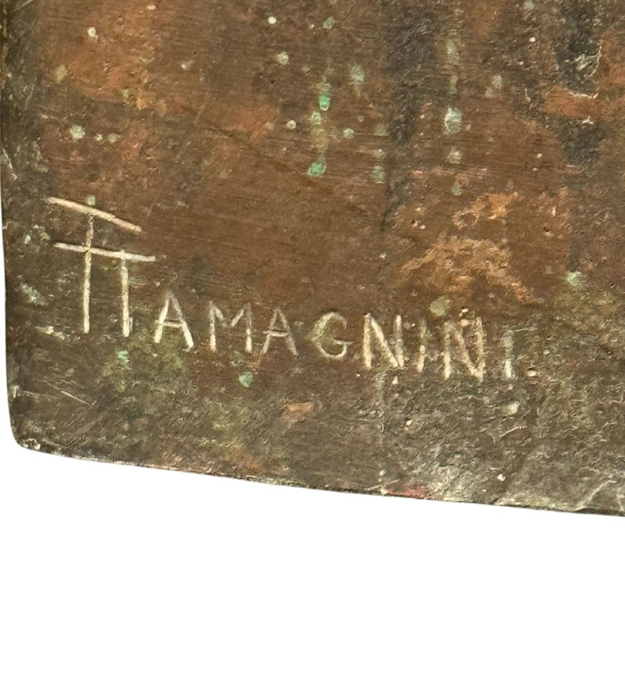 Scultura in bronzo, patinato a cera persa, periodo XX secolo, raffigurante Busto di personaggio femminile. Reca firma Tamagnini. Dimensioni: 64x26x23 cm. Opera in ottime condizioni e di eccellente qualità artistica.