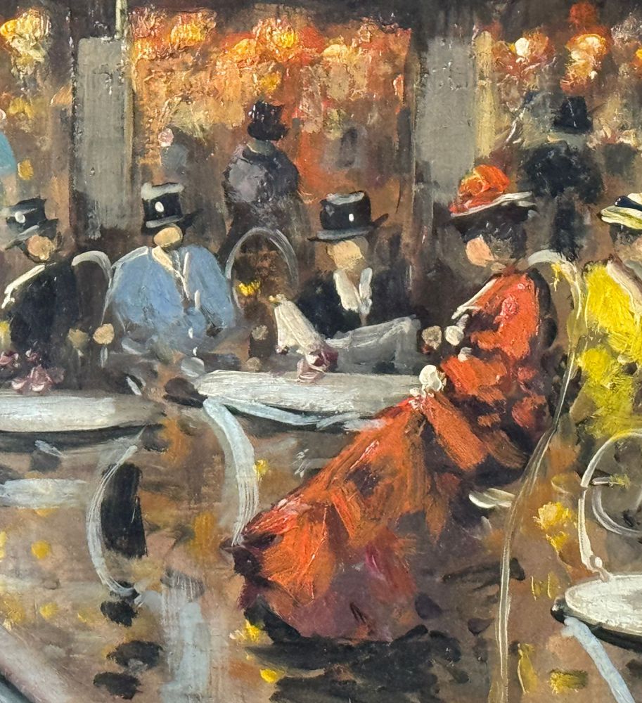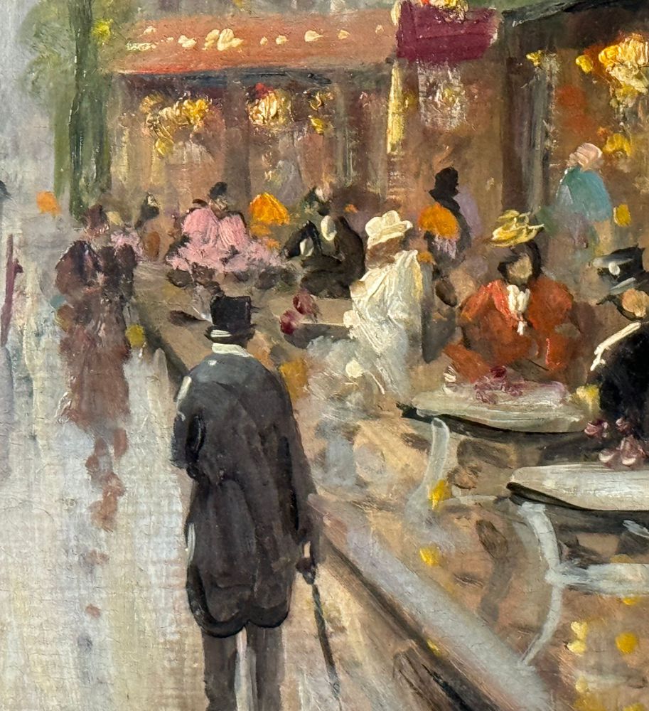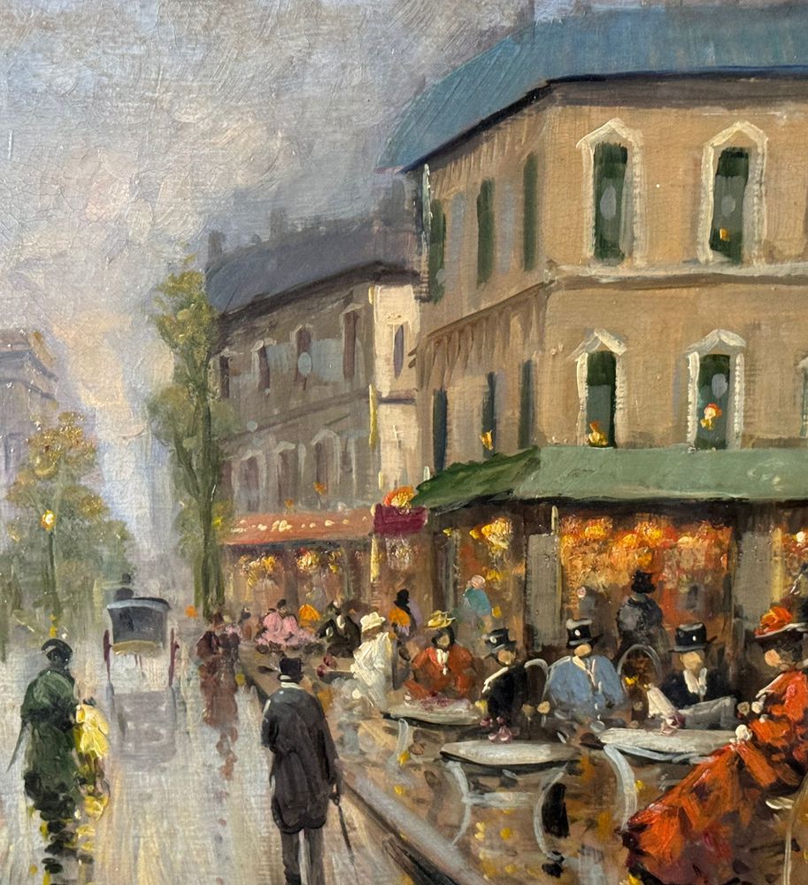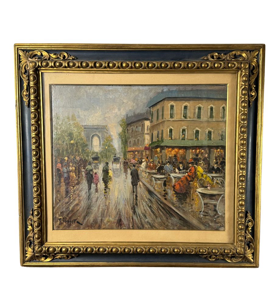 Dipinto olio su tela, periodo XX secolo scuola Italiana, raffigurante Strada di Parigi, omaggio a Pietro Scoppetta. Dimensioni compreso cornice: 85x78 cm. Dimensioni interno cornice: 60x50 cm. Da artista anonimo. Opera in buone condizioni.