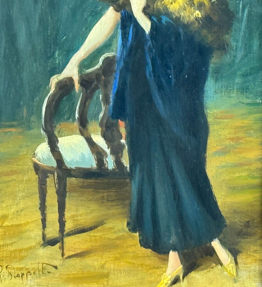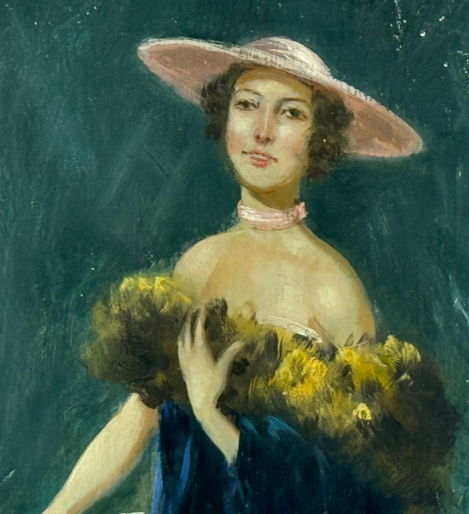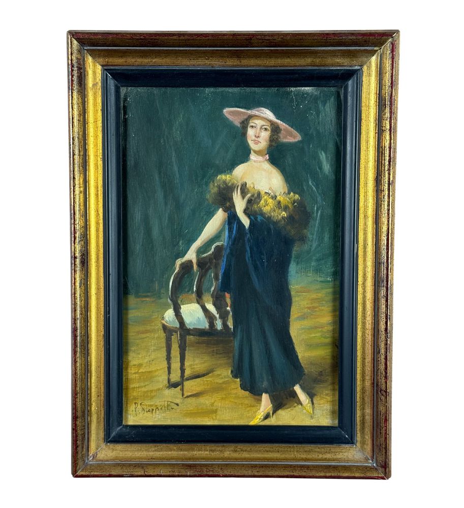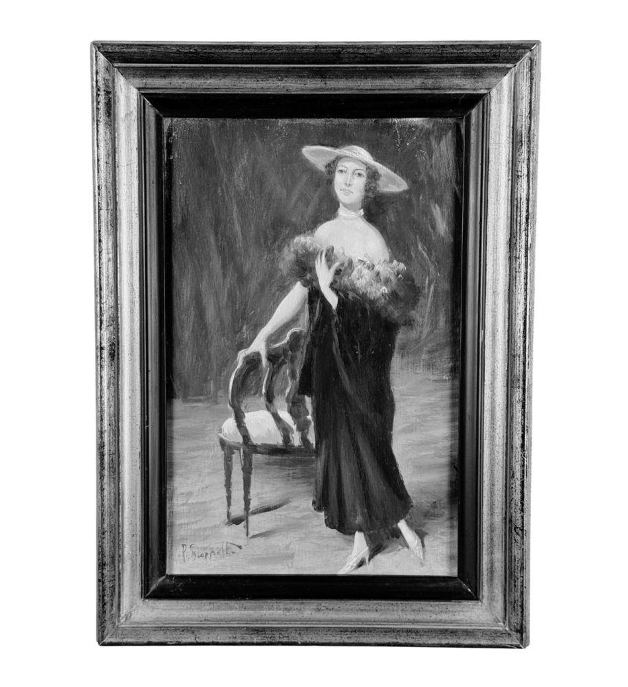 Dipinto olio su tavola, periodo XX secolo scuola Italiana, raffigurante Ritratto di donna elegante. Dimensioni compreso cornice: 27x37 cm. Dimensioni interno cornice: 19x29 cm. Reca firma in basso a sinistra da Pietro Scoppetta. Opera in buone condizioni.