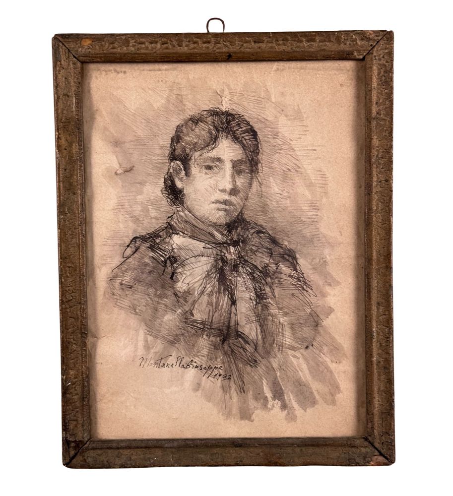 Disegno su carta, periodo XX secolo scuola Italiana, raffigurante Ritratto di donna. Dimensioni compreso cornice: 24x31 cm. Dimensioni interno cornice: 21x28 cm. Reca firma in basso a sinistra da artista non identificato. Opera in discrete condizioni.